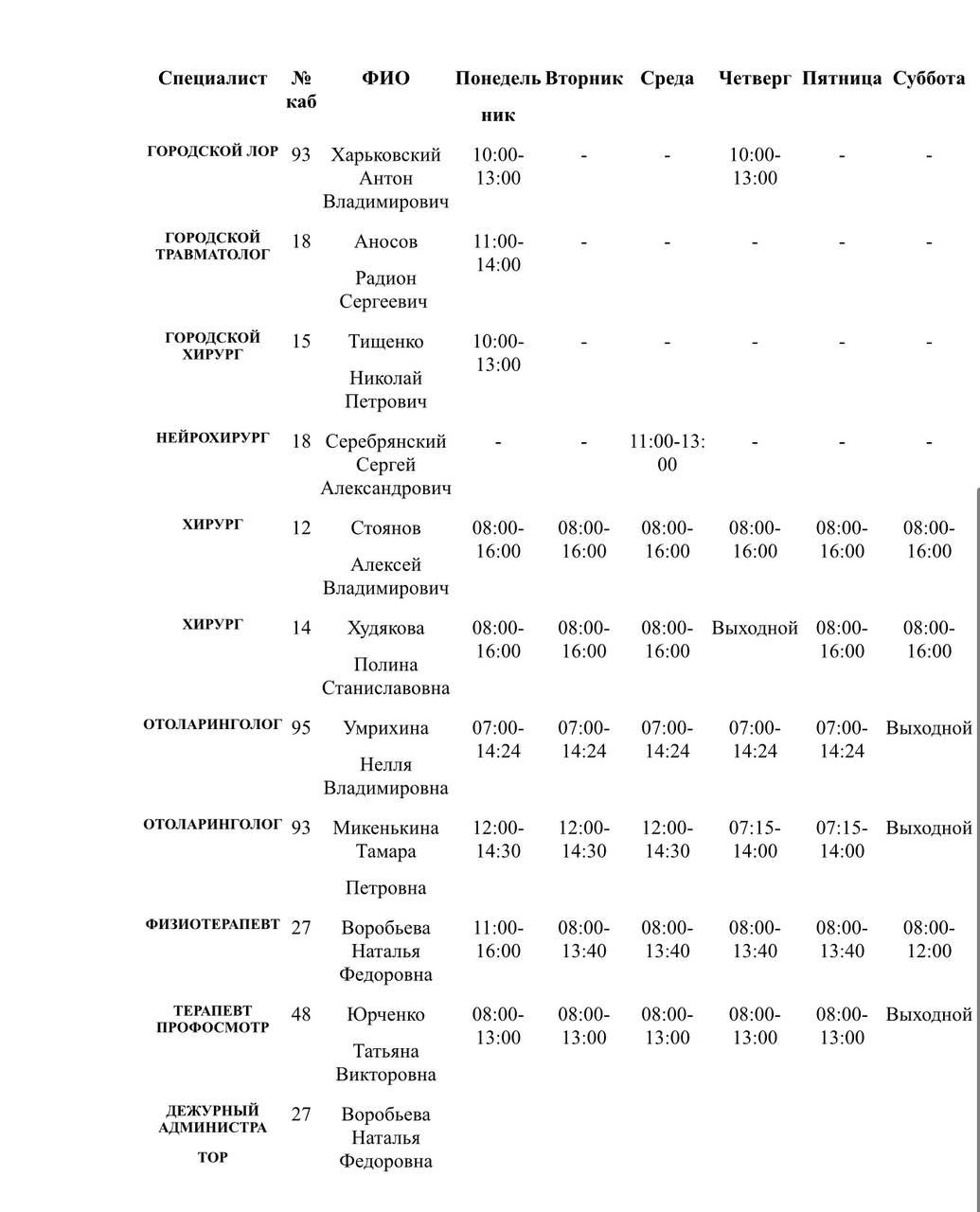 Иван Приходько: График работы специалистов ГБУ ДНР «Городская больница № 1 г. Горловки», ГБУ ДНР «Городская больница № 2 г. Горловки»