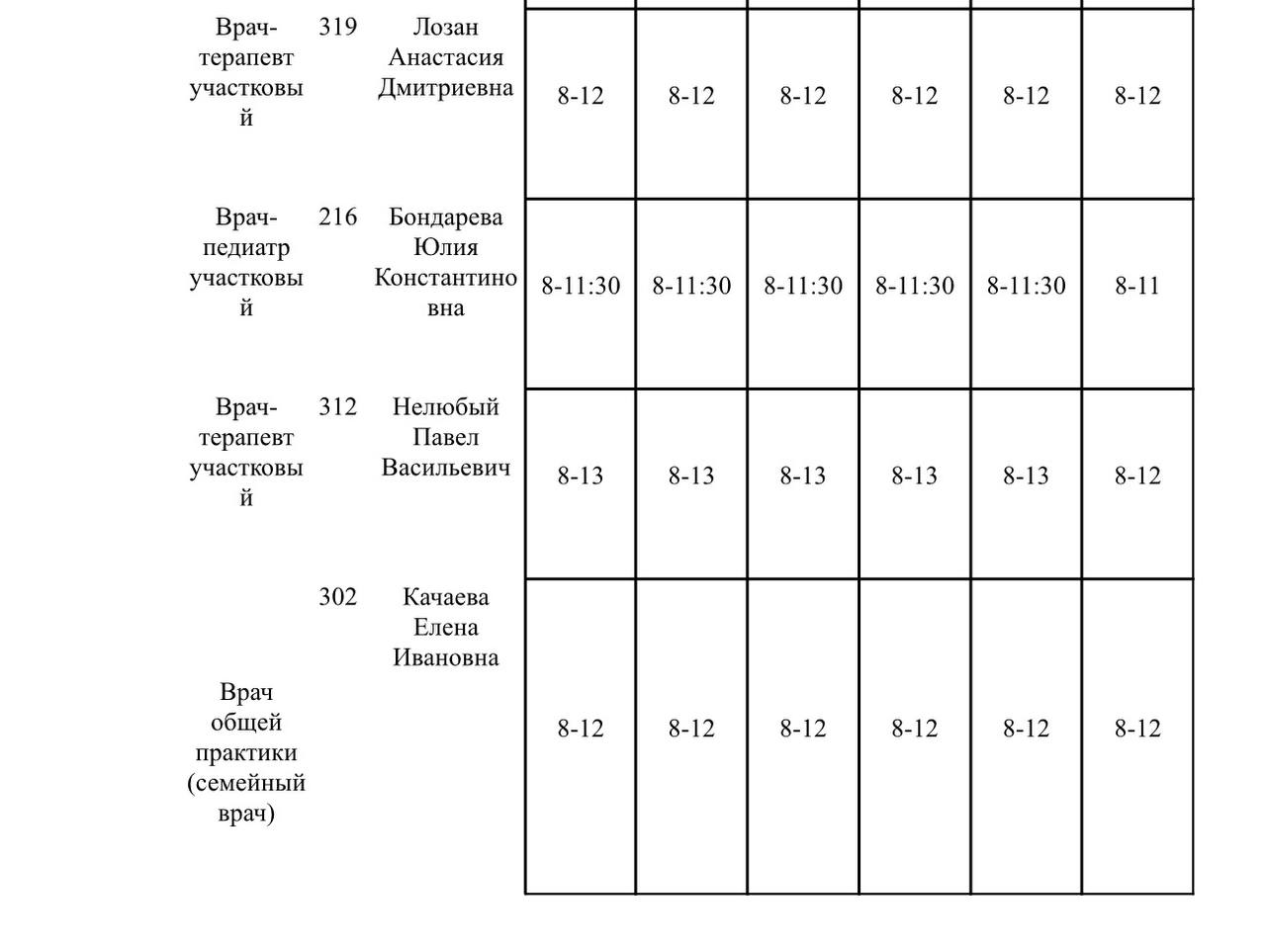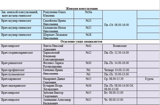 График работы специалистов ГБУ ДНР «Городская больница № 1 г. Горловки», ГБУ ДНР «Городская больница № 2 г. Горловки»