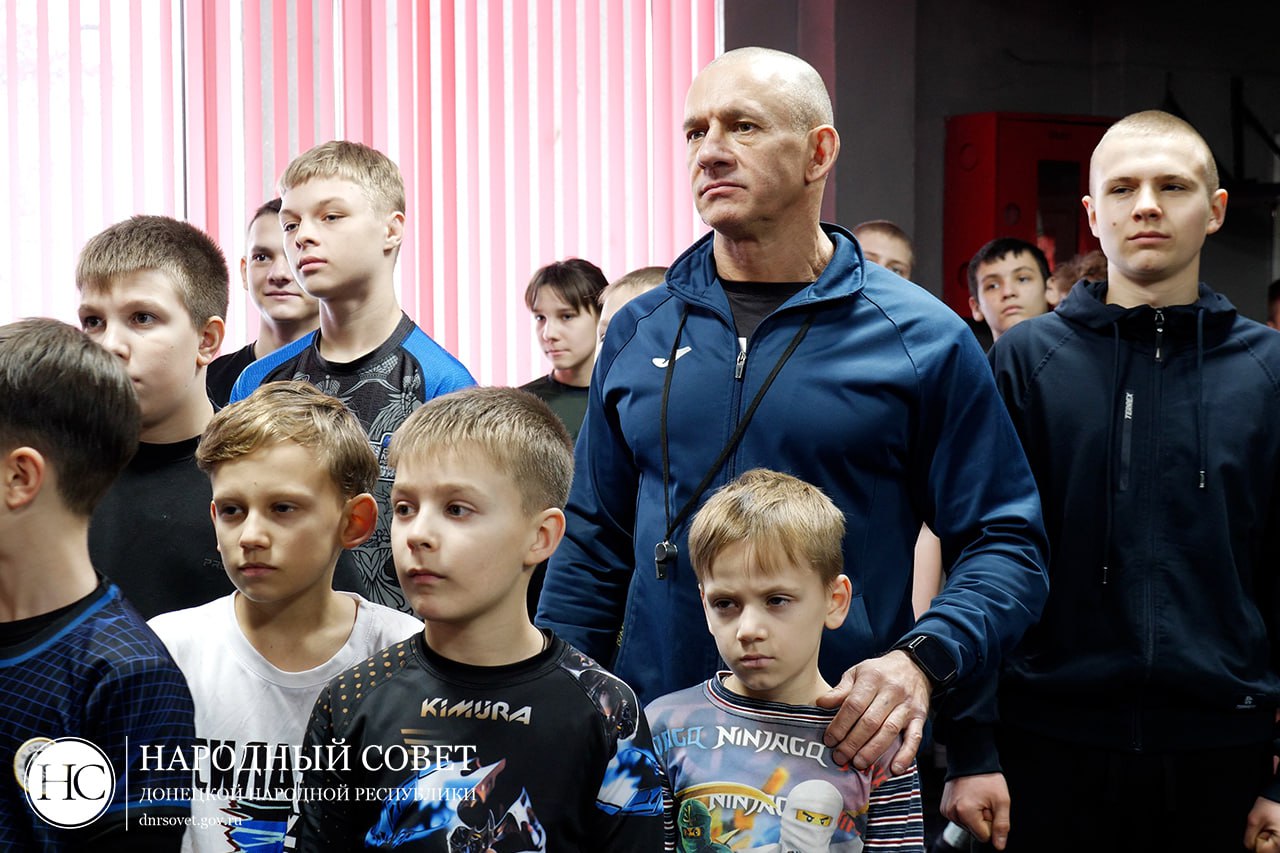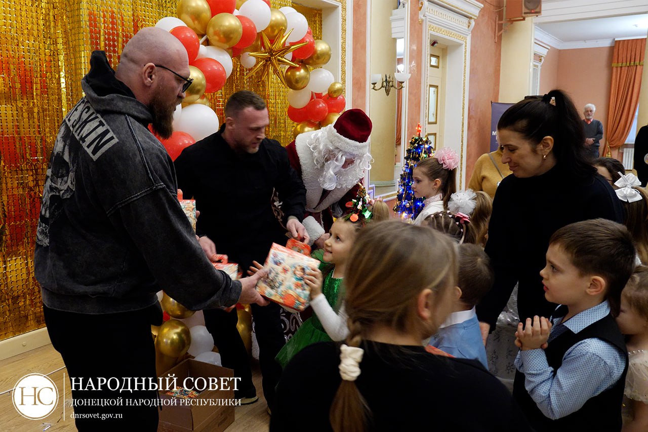 Заместитель Председателя Народного Совета Николай Сытов совместно с российским чемпионом по боксу Дмитрием Кудряшовым, представителем Общероссийской организации «Сильнейшая нация мира» Владимиром Никитиным и Председателем Молодежного Парламента Сергеем Журавлевым привезли подарки детям в «Донецкую специальную школу-интернат №22».