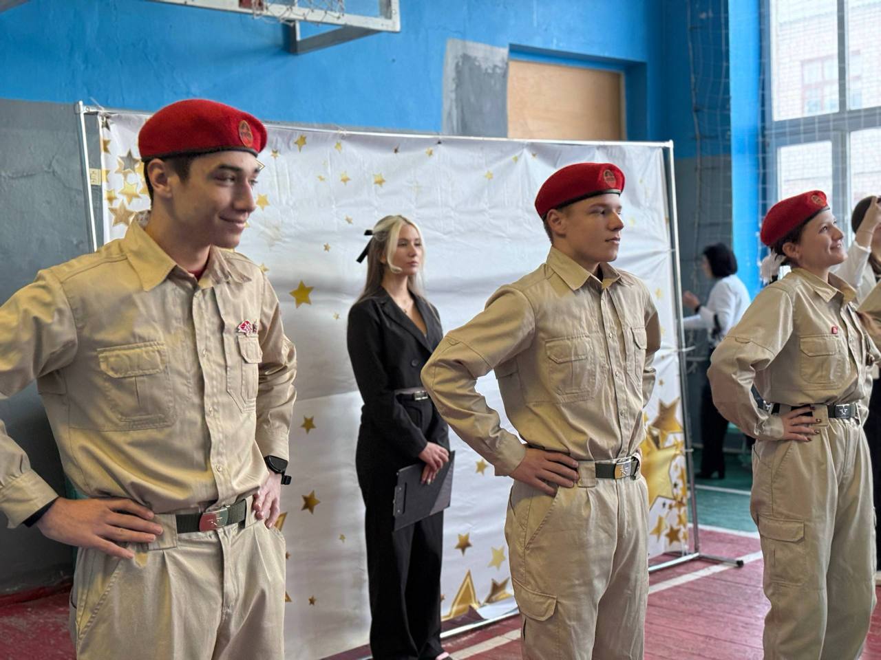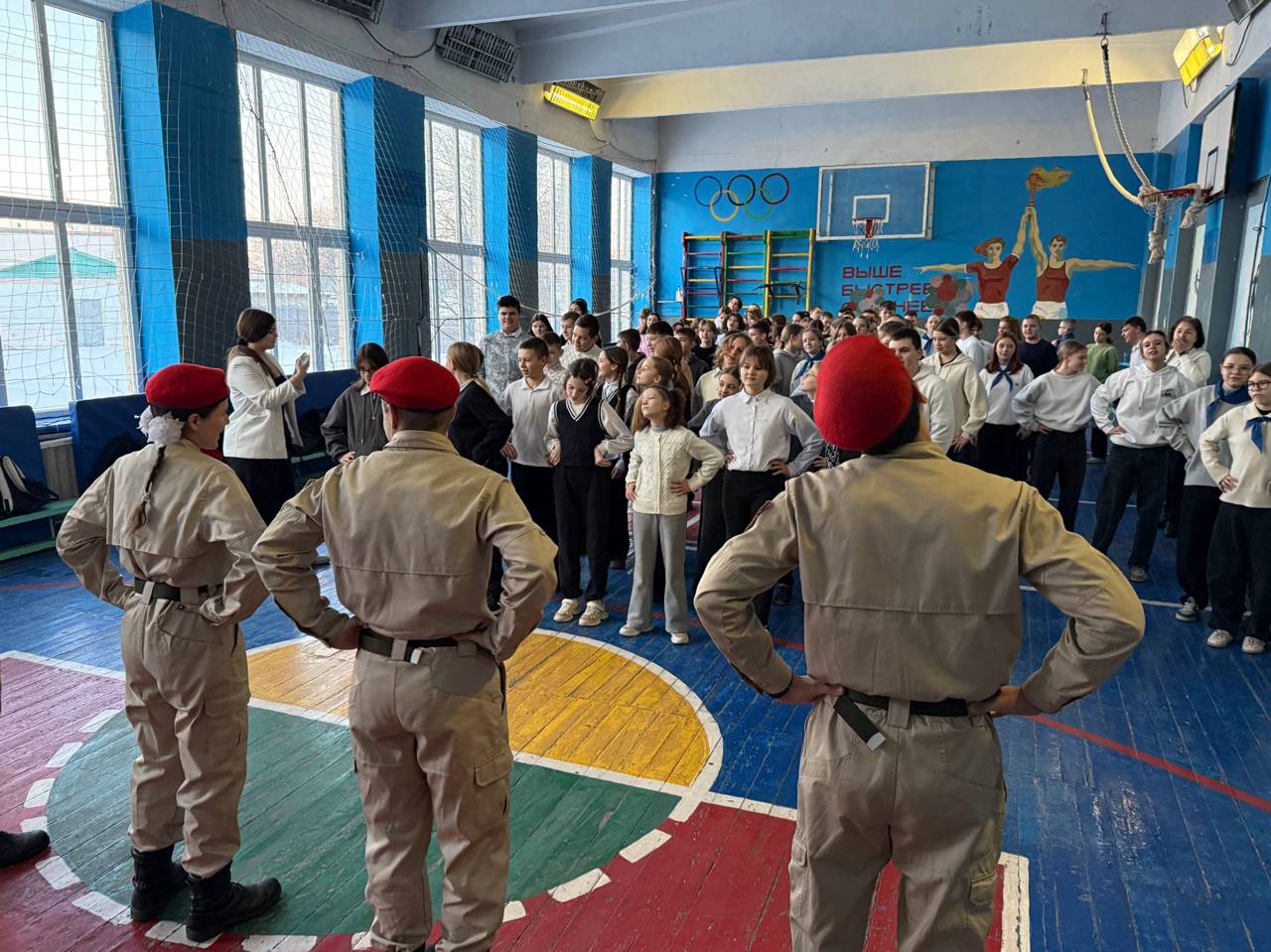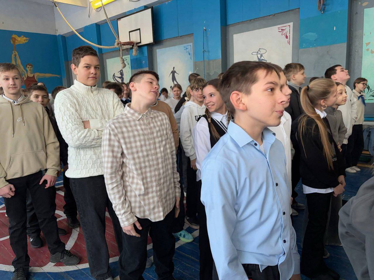 Юнармейцы отряда ВПК «Пламя» штаба местного отделения городского округа Харцызска СШ № 4, ученики из 9-А класса Мокровуз Виктория, Воробьев Сергей, Матинян Михаил и Иващенко Мария, перед уроками провели для обучающихся школы зарядку.