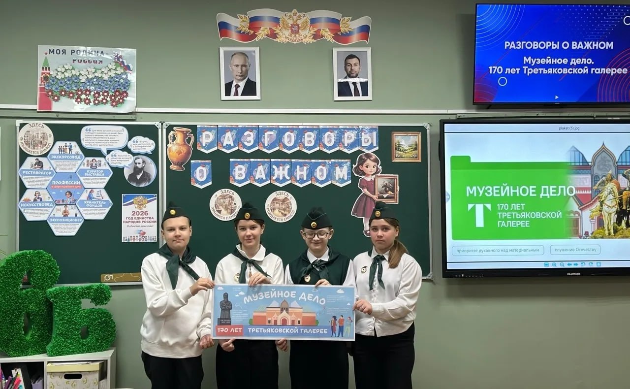 Сегодня в школах, техникумах и колледжах Донецкой Народной Республики в рамках проекта «Разговоры о важном» состоялись занятия на тему «Музейное дело. 170 лет Третьяковской галерее».
