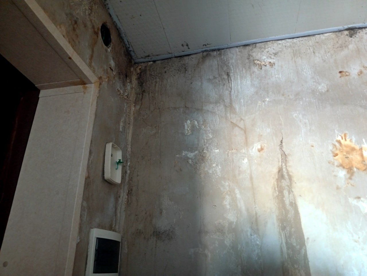 По просьбе жильцов, Александр Черников проверил состояние кровли в доме. Замечания поступили о протечках в первом подъезде. В квартире на 9 этаже были выявлены следы воды, которая, по словам жильцов, достигает 8-го этажа.