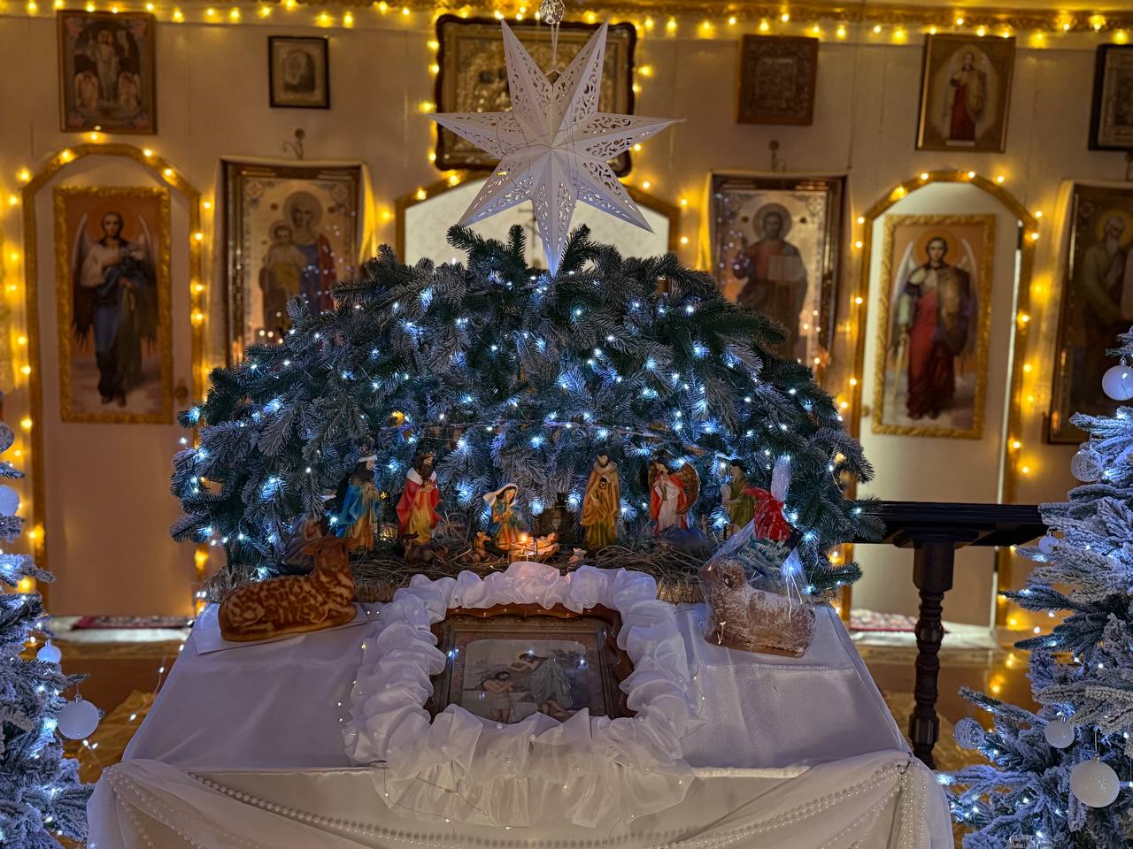 Участники, включая волонтёров и местных жителей, собрались в храме Свято-Казанской иконы Божией Матери для совместной молитвы и празднования.
