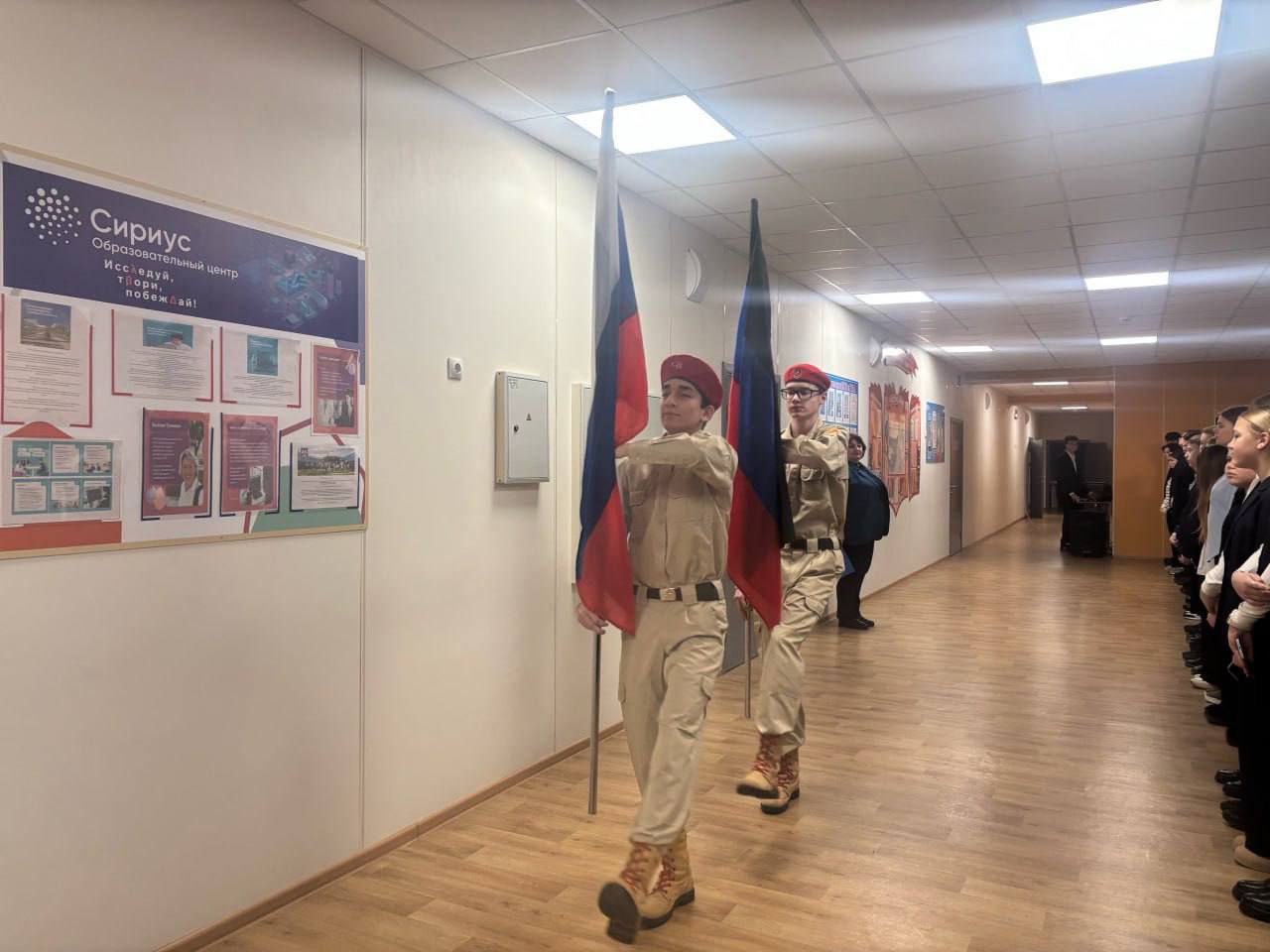 Традиционно новая учебная неделя в Тельмановской гимназии началась с линейки и почётного права выноса флага Российской Федерации и флага Донецкой Народной Республики юнармейцами ВПК «Юные патриоты Донбасса» ГБОУ «Тельмановская гимназия Тельмановского м.о.».