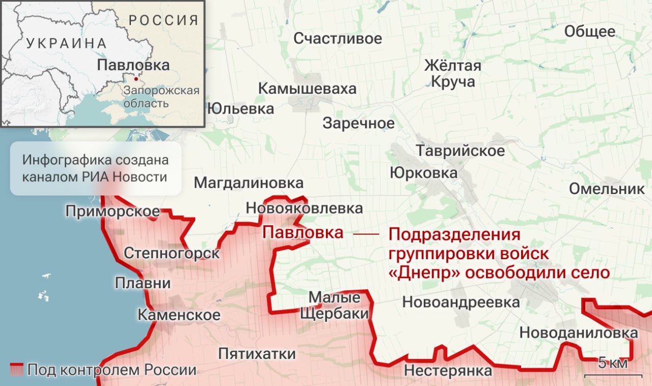 Российские войска освободили Новопавловку в ДНР и Павловку в Запорожской области.