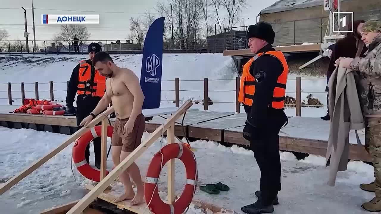В Донецке установились настоящие крещенские морозы. Но они не стали помехой для священного ритуала. В прорубь с ледяной водой окунулись активисты молодежных движений республики. К ним присоединился и Глава ДНР Денис Пушилин.