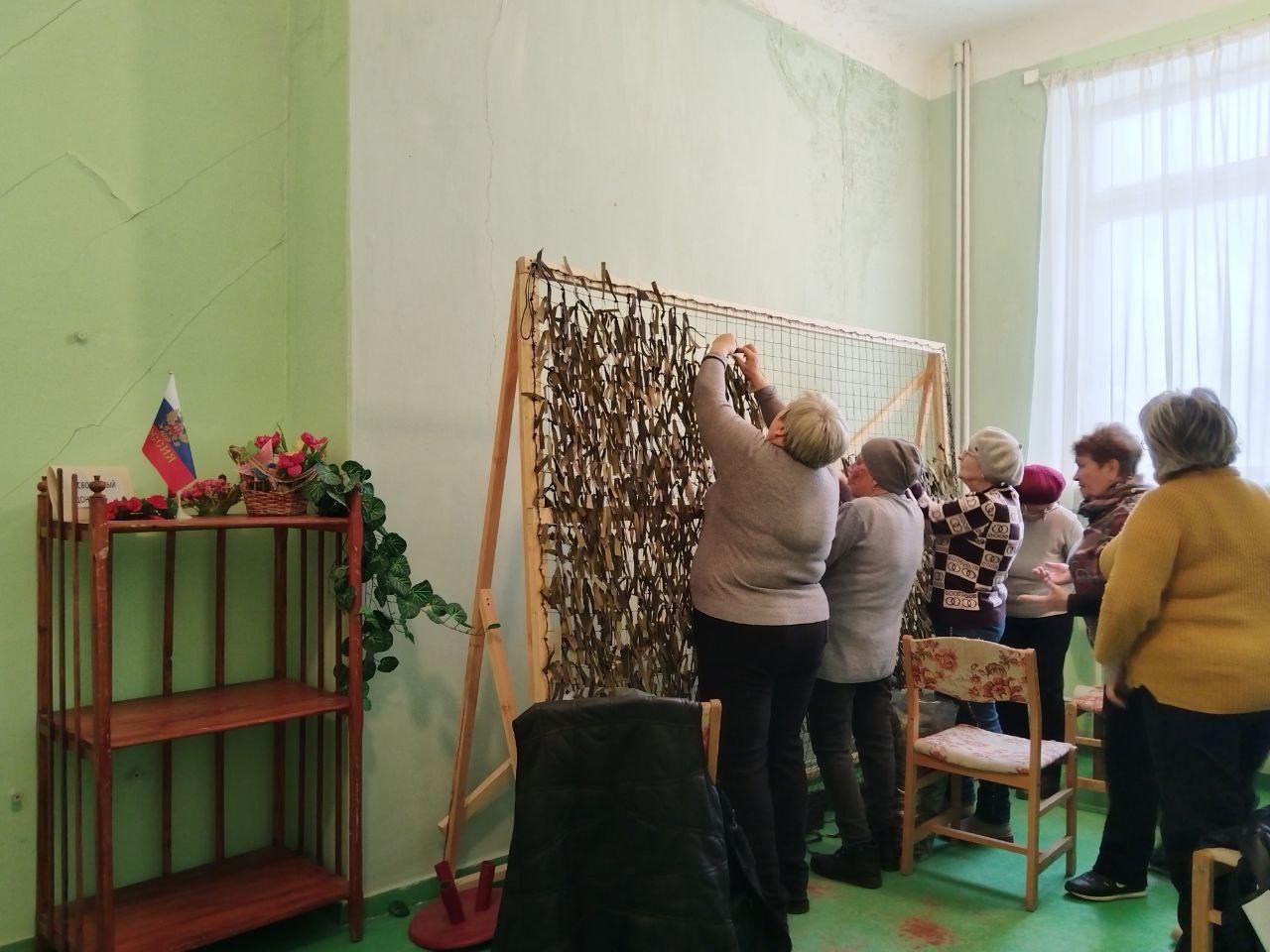 В Новоамвросиевском ДК единороссами организована работа по плетению маскировочных сетей