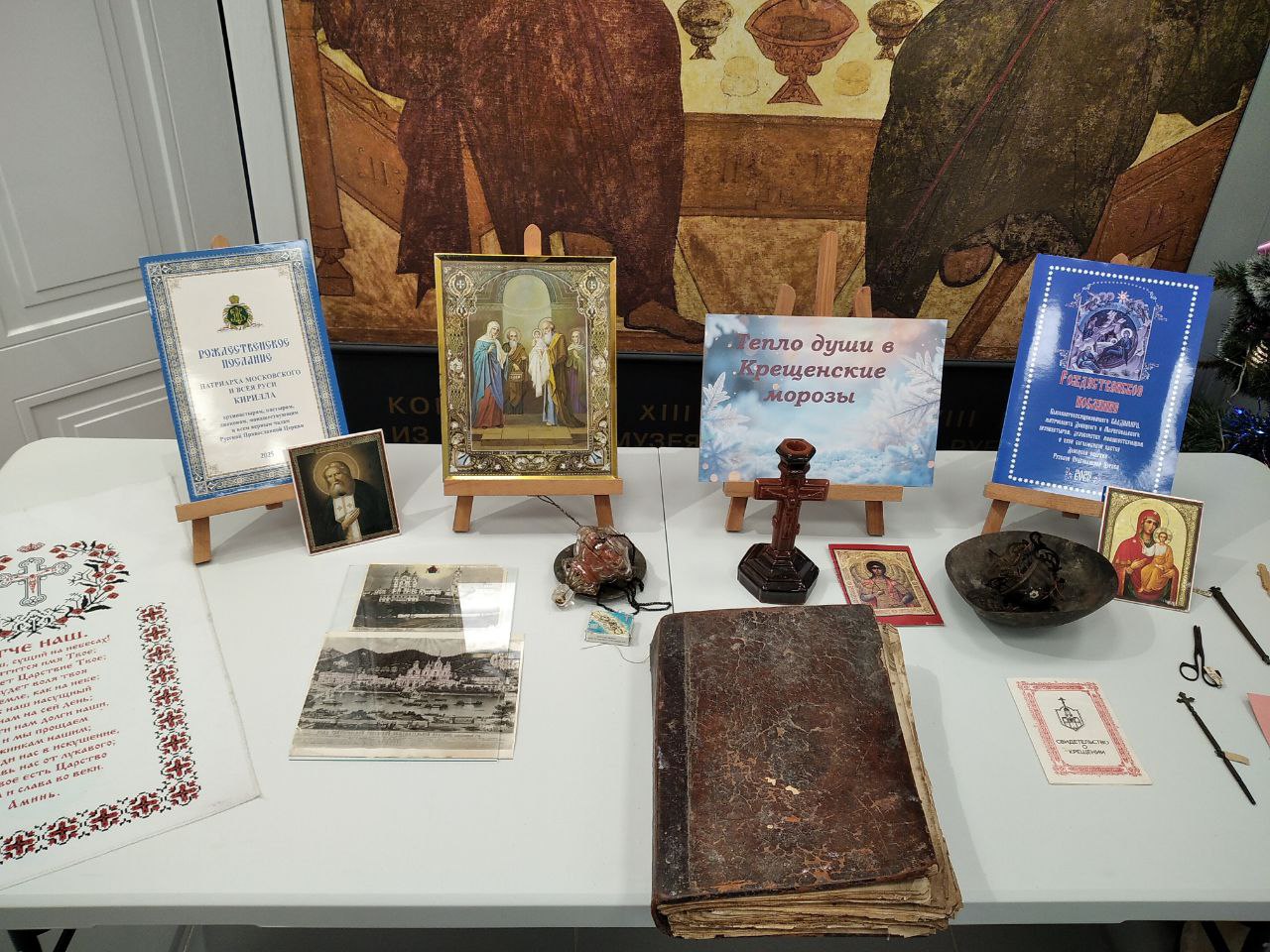 19.01.2026г. в Волновахском окружном историко-краеведческом музее открылась выставка «Тепло души в Крещенские морозы» посвященная празднику Крещение Господне. Это один из главных христианских праздников, не менее важный, чем Рождество. Праздник носит и другое название – Богоявление. Миру была явлена Святая Троица: Бог Отец свидетельствовал о Сыне голосом с небес, Бог Сын принимал крещение в водах Иордана, а Святой Дух сошёл на Него в виде голубя. Посетители музея смогли ознакомиться с историей праздника, его традициями и народными Крещенскими приметами.