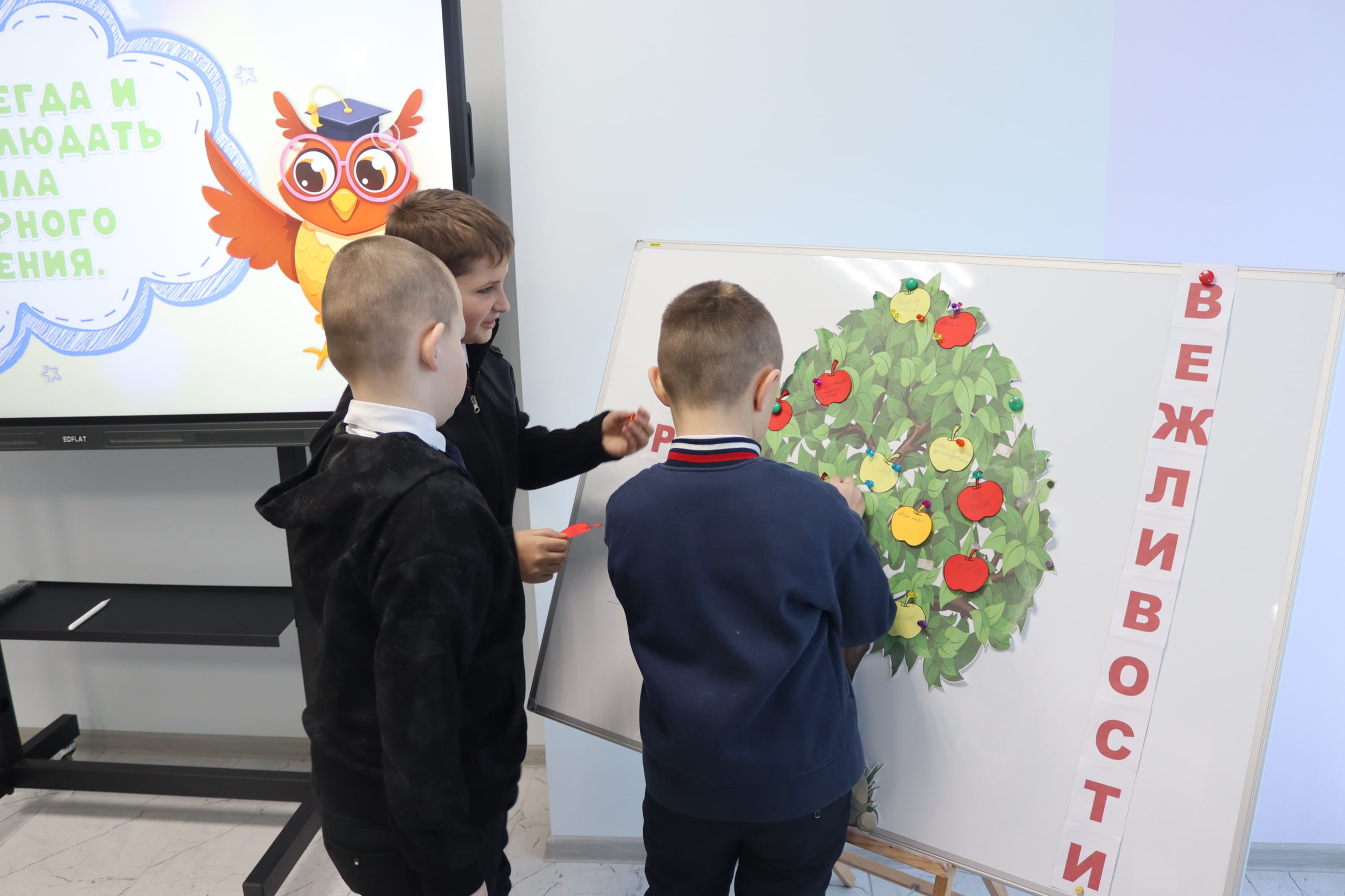 А в завершение мероприятия школьники украсили «дерево вежливости» волшебными словами.