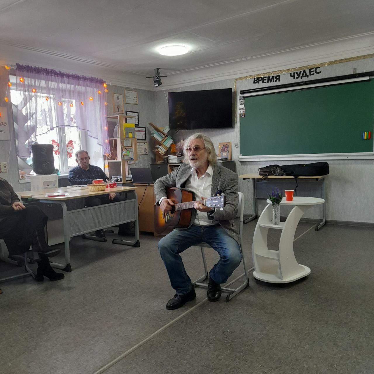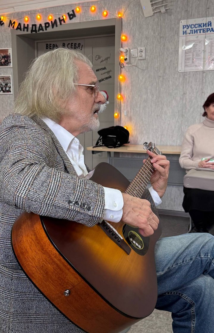 Сергей Адольфович рассказал интересные истории о казусах на сцене. Кульминацией встречи стали песни под гитару, талантливо исполненные актером.