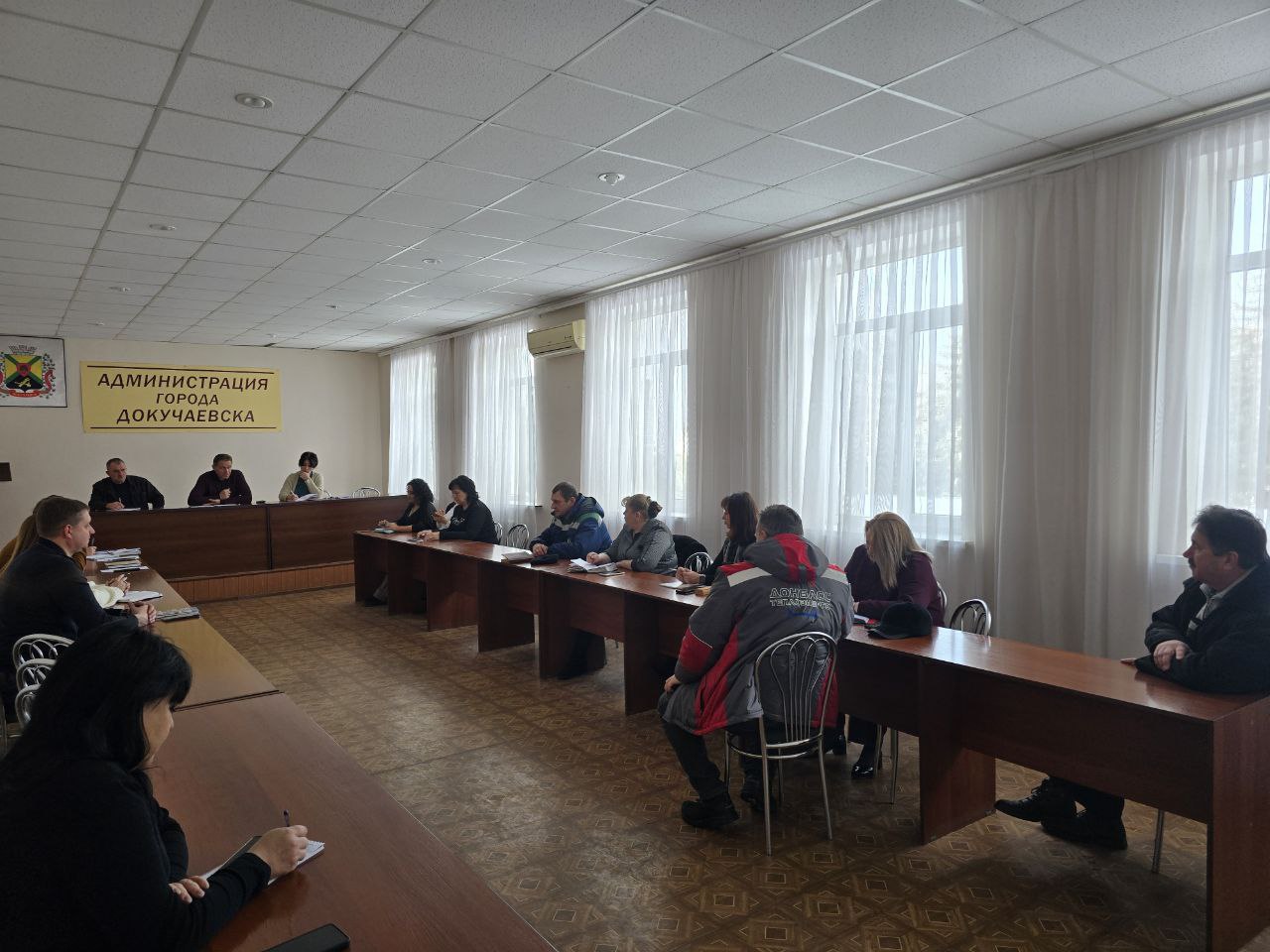 о содержании и обслуживании МКД в МО ГО Докучаевск: (обслуживание МКД; прохождение отопительного периода 2025-2026; выполнение плановых и текущих ремонтов в МКД; количество удаленных аварийных деревьев с придомовых территорий МКД);