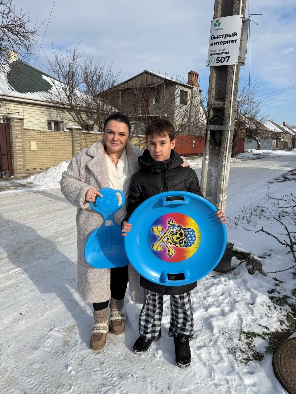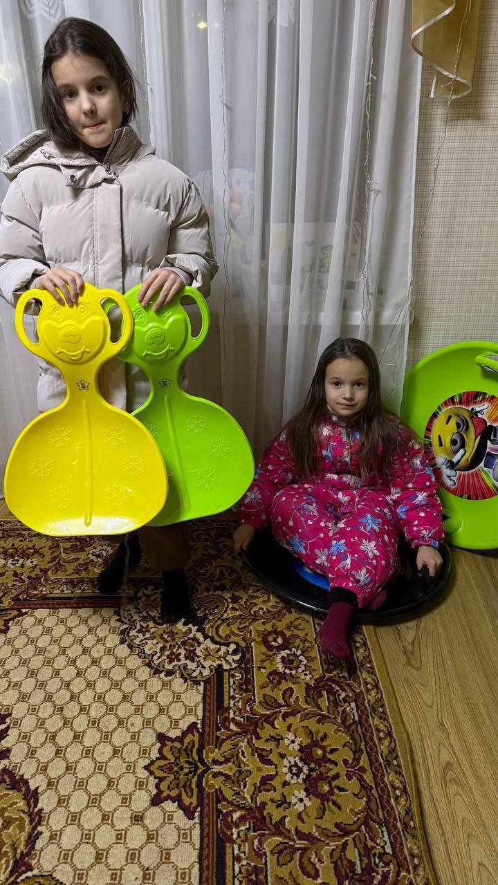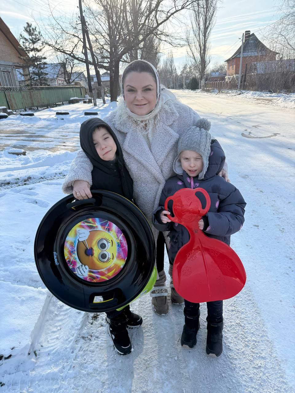 На улице снежно, поэтому в этот раз, кроме стандартной помощи (продукты, средства гигиены, медикаменты и игрушки) развезли деткам санки и ледянки.