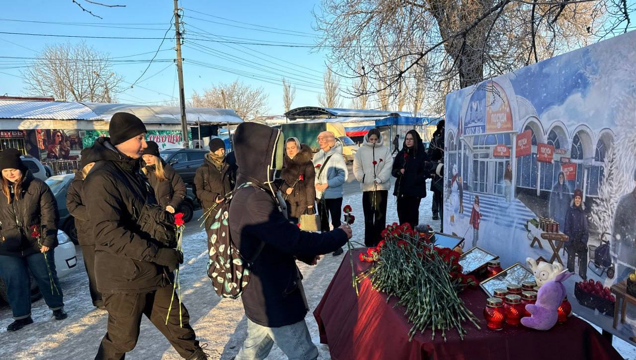 Мемориальная акция прошла на месте удара ВСУ по рынку в донецком микрорайоне Текстильщик в ДНР во вторую годовщину трагедии