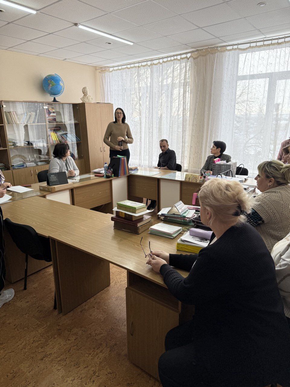Сегодня заведующий Новоселовским территориальным сектором Администрации Тельмановского округа провела встречу с коллективом Новоселовской школы.