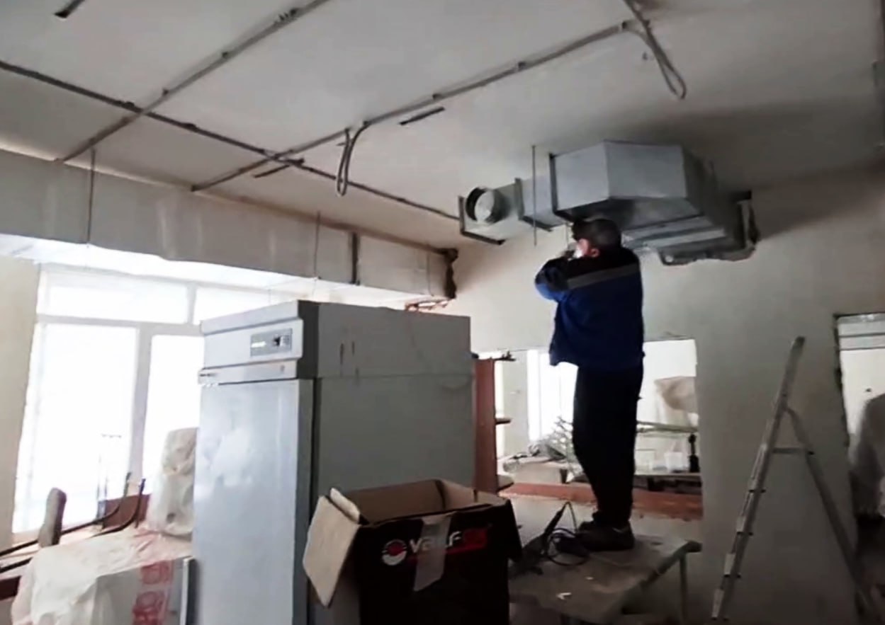 Подмосковные строители продолжают капитальный ремонт здания Новоазовской школы № 2 и школы в селе Безыменное. На объекте трудятся по 4 человека. На данный момент в учебных заведениях проводится монтаж вентиляционных систем. Строительная готовность на данном этапе составляет практически 80%.