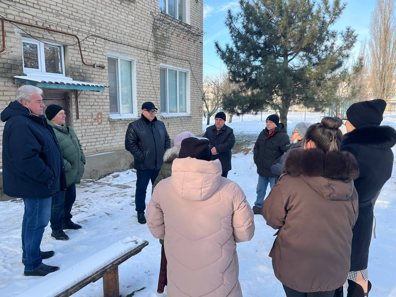 Совместно с председателем Новоазовского муниципального совета Анатолием Яновским, начальником Новоазовского теротдела Александром Баландиным встретился с жителями дома по адресу город Новоазовск, ул. 50 лет СССР, 12.