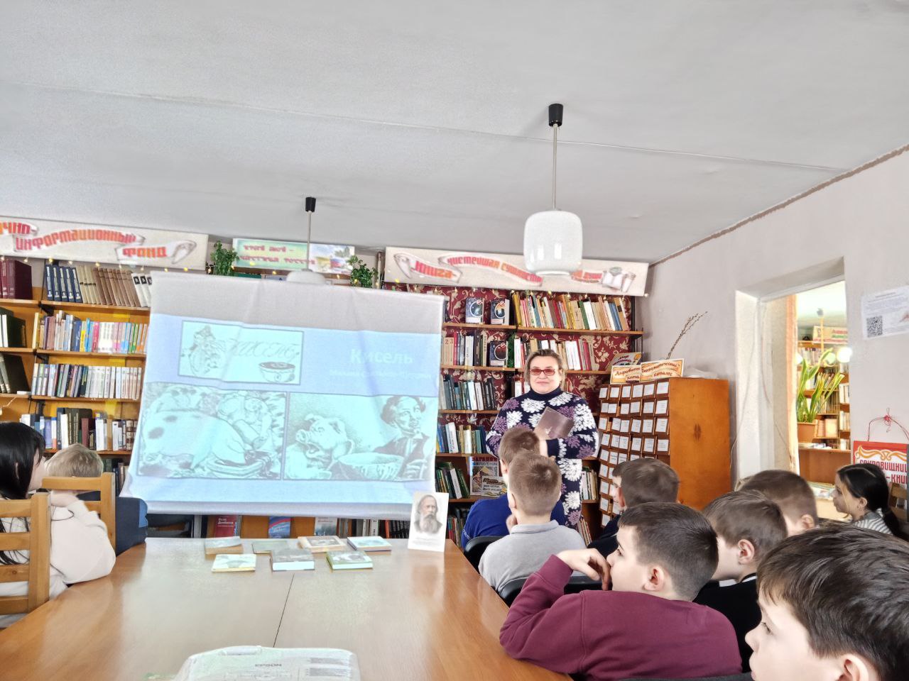 Библиотекари познакомили ребят с биографией писателя и его сказками. Для ребят прочли сказку «Кисель».