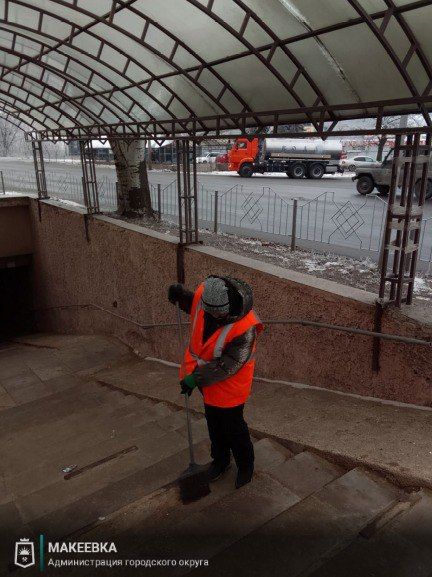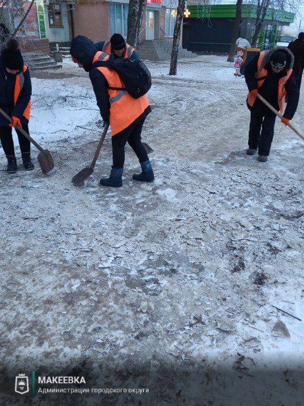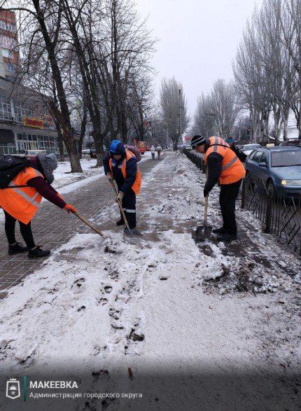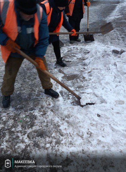 по сбору мусора, уборке дорог, остановок и тротуаров от последствий снегопада во всех районах города, в частности, по ул. Ленина, Московской, Донецкой, Островского, Академической, Кирова, Кулабухова, Шевченко, бул. 8 Сентября, Малиновского, пр. 250-летия Донбасса, пгт. Грузско-Ломовка и пр.