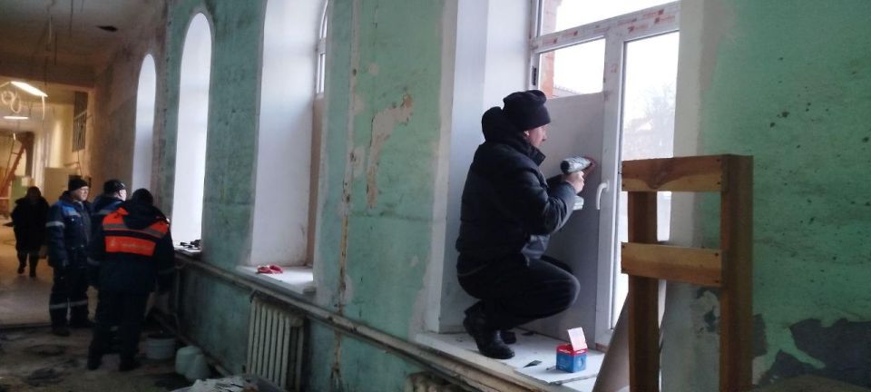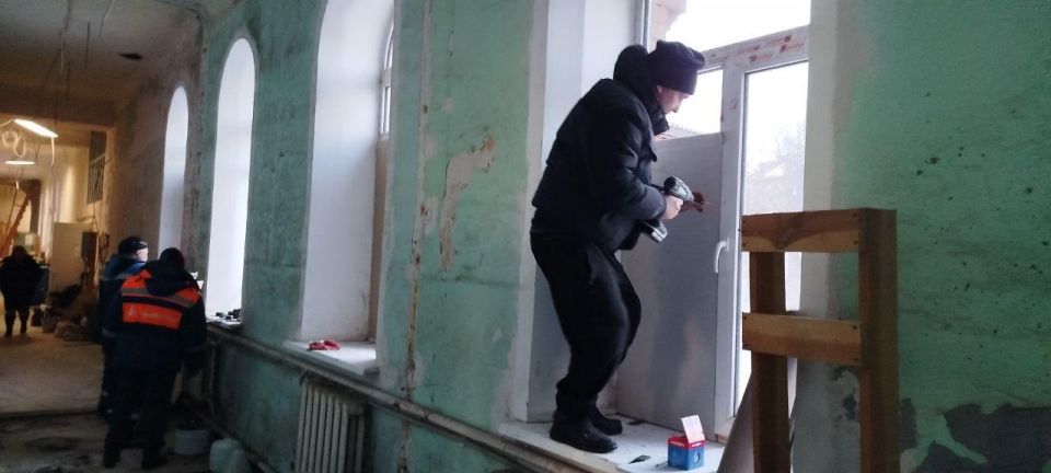 Бригада из 5 человек отремонтировала более 3 оконных блоков в музее на улице Ленина, обеспечив герметичный тепловой барьер для строения Дебальцевского городского музея.