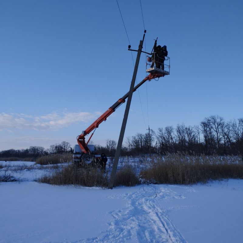 ремонт линии электропередач, питающей с. Богдановка.