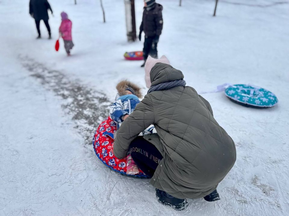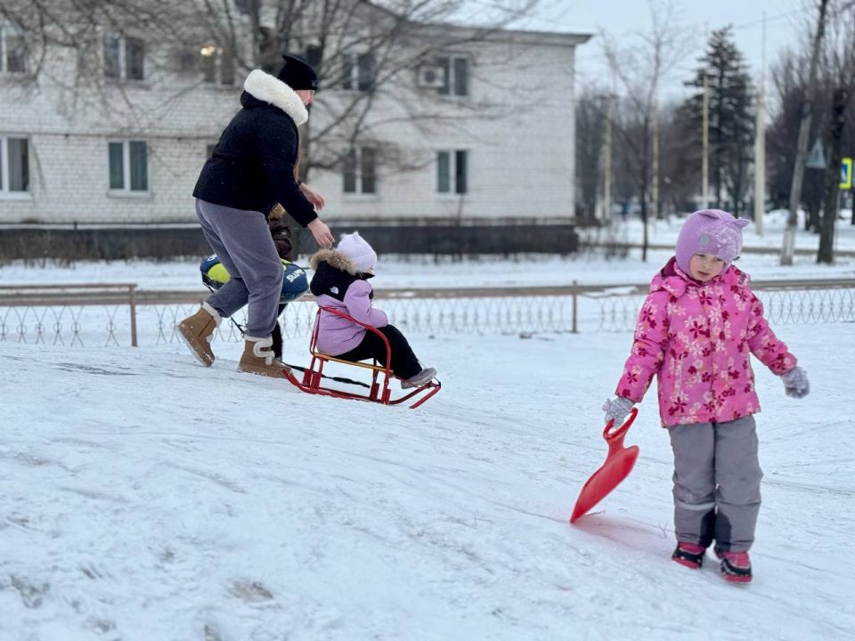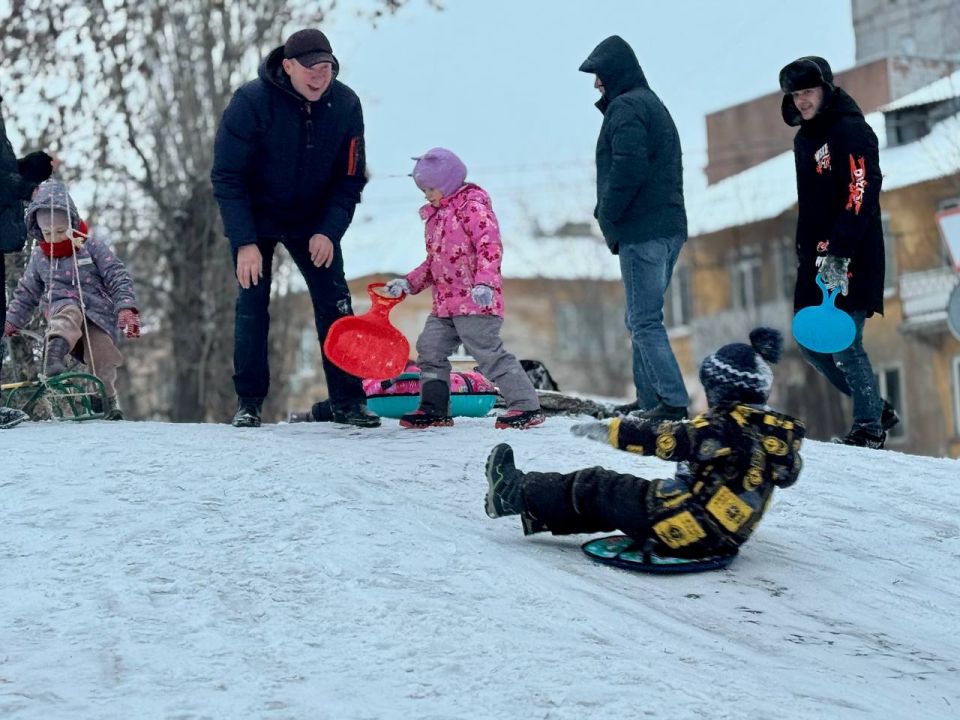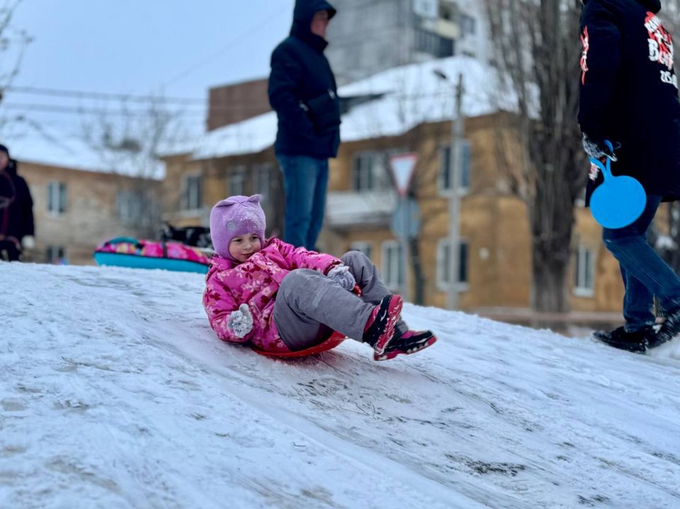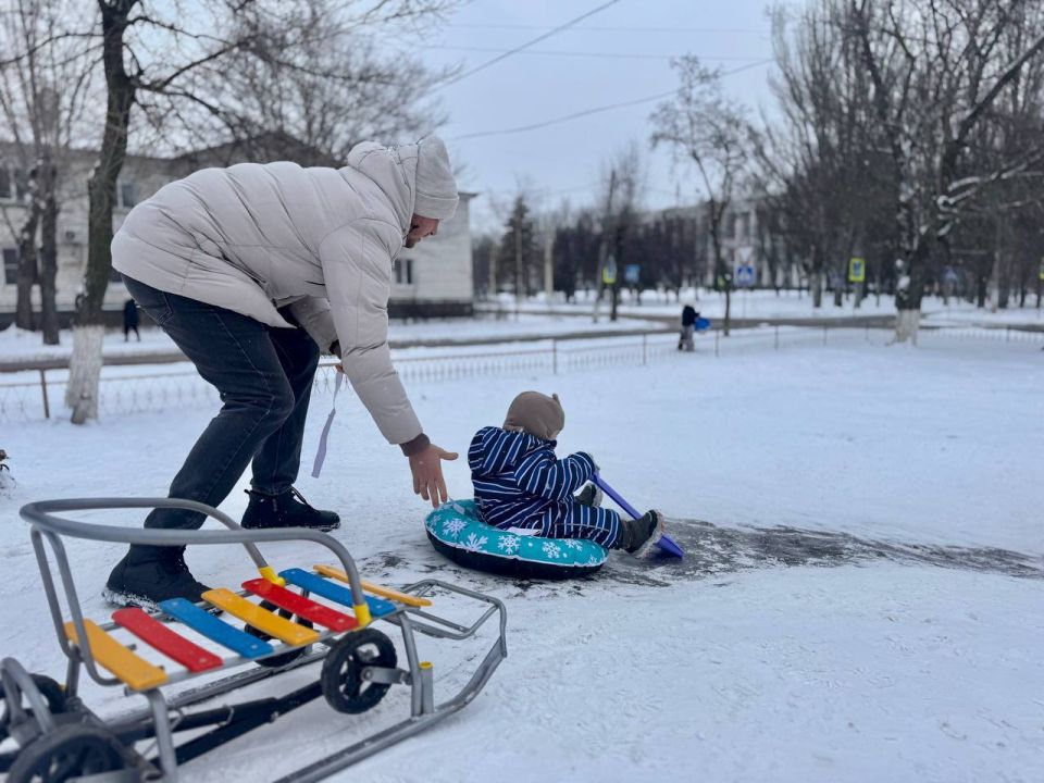 Зимние забавы в Донецке: дети покоряют снежные вершины