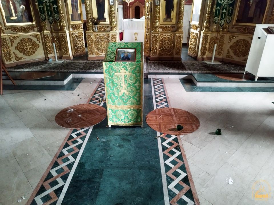 Орудовали бандиты и внутри храма. Они проникли в алтарь и похитили часть церковной утвари. Остальные предметы преступники разбросали или разбили.