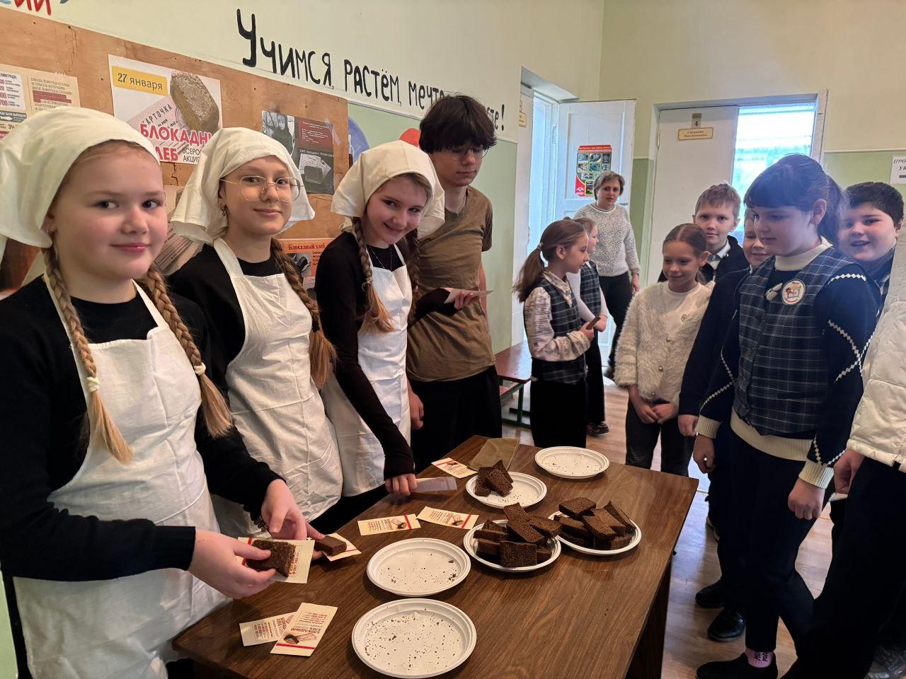 В знак памяти и понимания масштаба тех испытаний ребятам раздали кусочки ржаного хлеба весом 125 граммов – именно столько составляла минимальная дневная норма в самые суровые дни блокады.