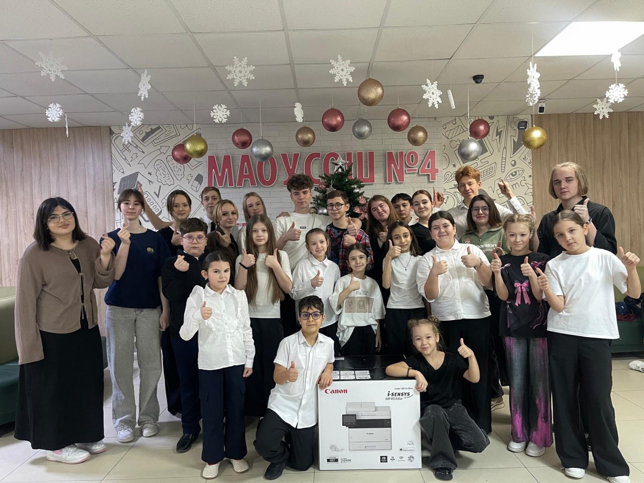 Родители и педагоги подарили цветной принтер по просьбе школы.