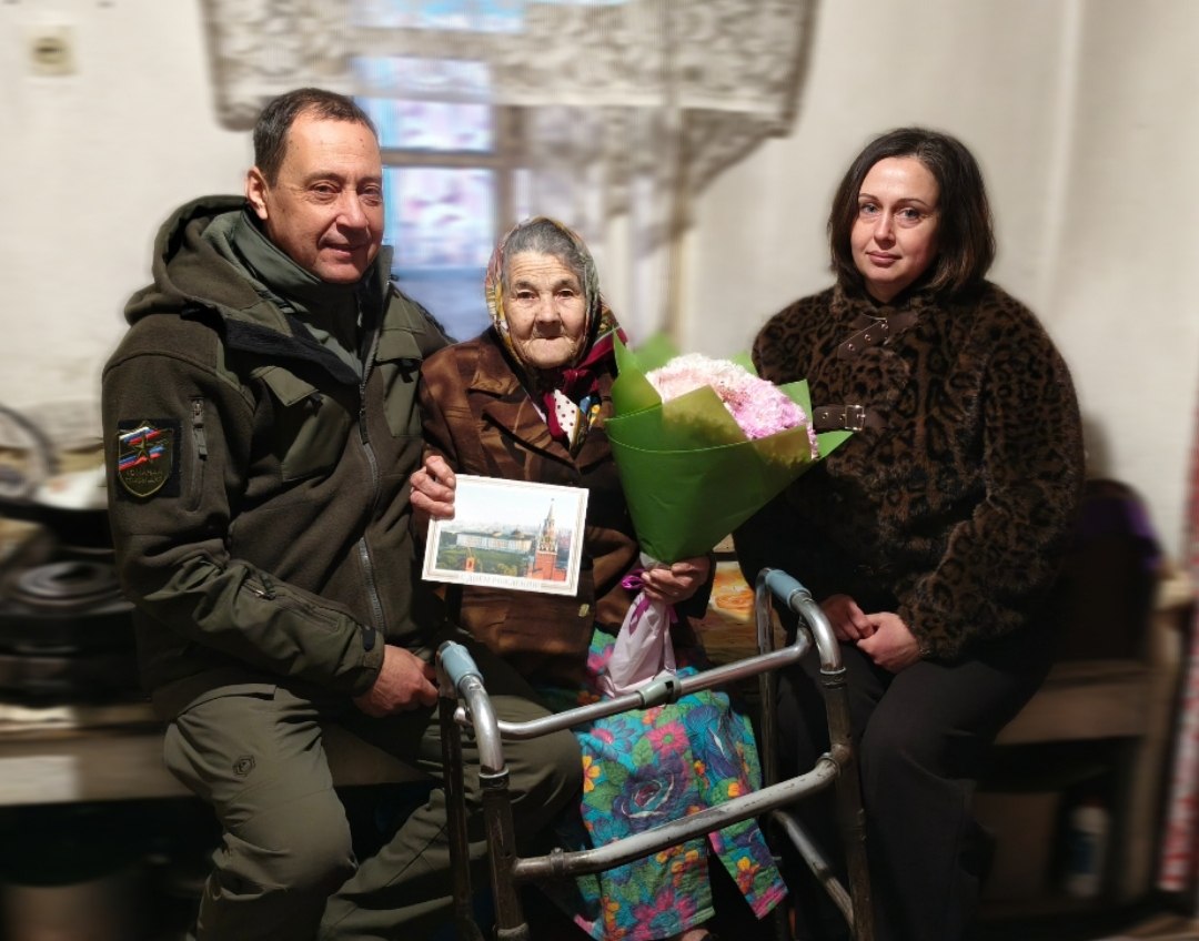 Совместно с заведующим Хлебодаровским территориальным сектором Ириной Лацвиевой поздравил именинницу. Вручил поздравительный адрес от Президента Российской Федерации Владимира Владимировича Путина – знак того, что её многолетний труд и жизненный путь не остались незамеченными на самом высоком уровне, а также цветы и продуктовый набор.