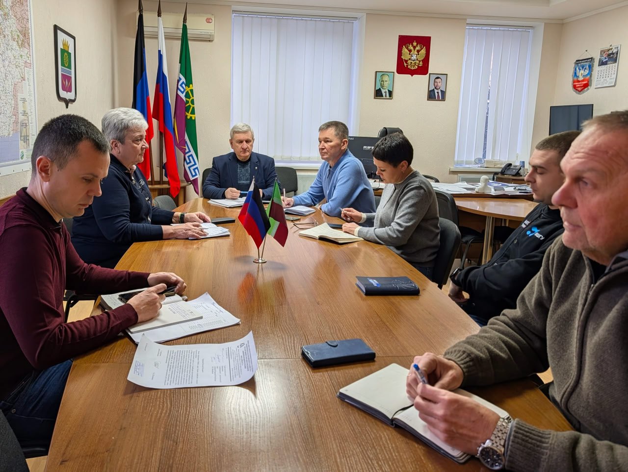 Провел оперативное совещание по текущим вопросам. Обсудили ситуацию в округе, доложили о выполнении данных ранее поручений, определили первостепенные задачи на сегодня, дал соответствующие поручения.