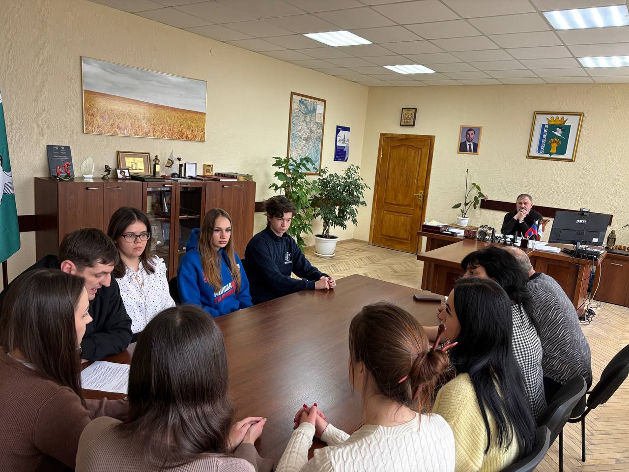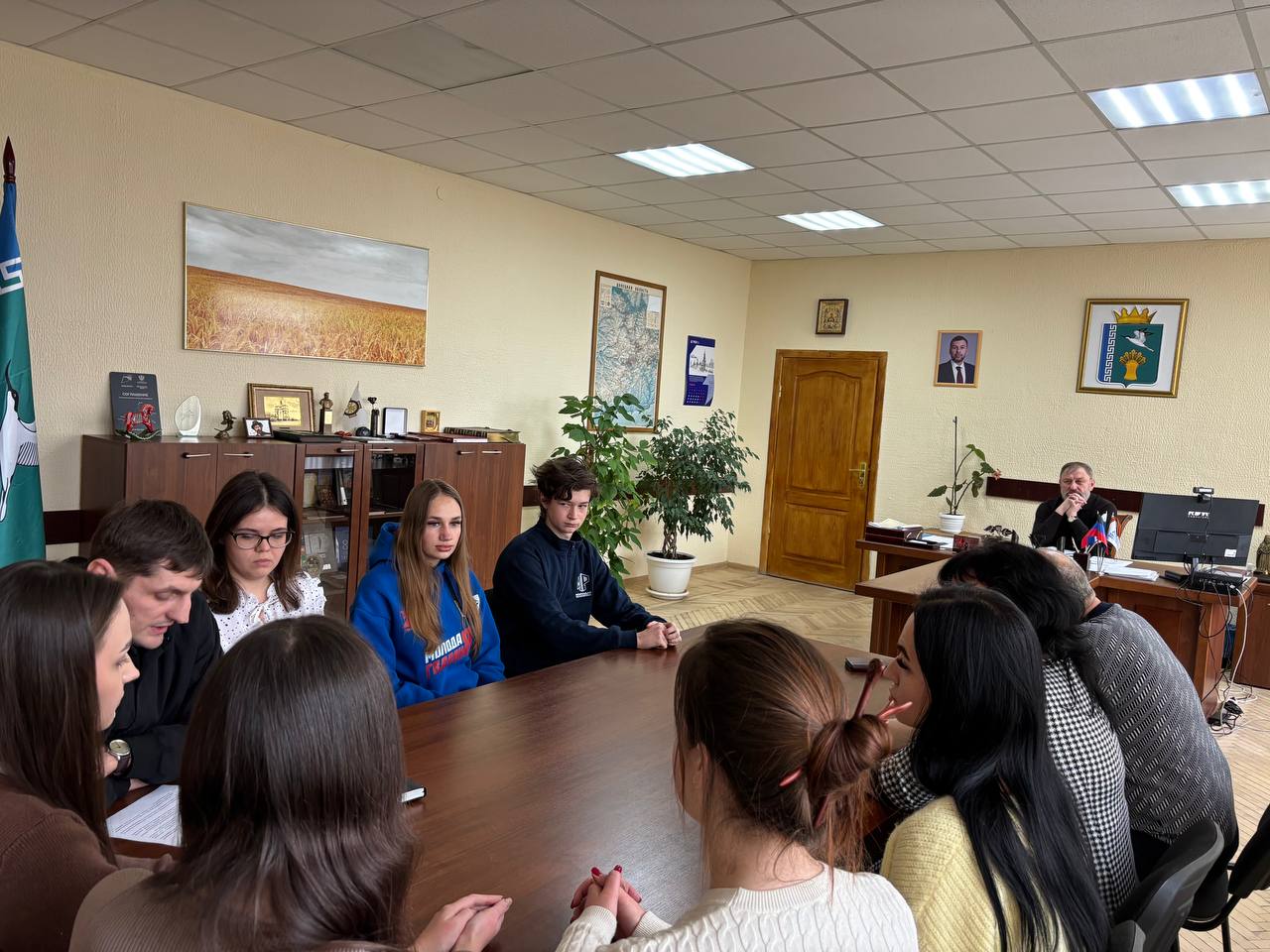 В администрации Мангушского муниципального округа состоялась рабочая встреча Главы администрации Бориса Тримы с активом местной молодёжи. Участие в совещании приняли заместитель Главы администрации Наталья Тосхопаран, заведующий сектором молодёжной политики, а также представители ведущих молодёжных организаций и движений: Мангушского штаба РОО «Народной Дружины», «Юнармии», Мангушского штаба МР и МГЕР ДНР.