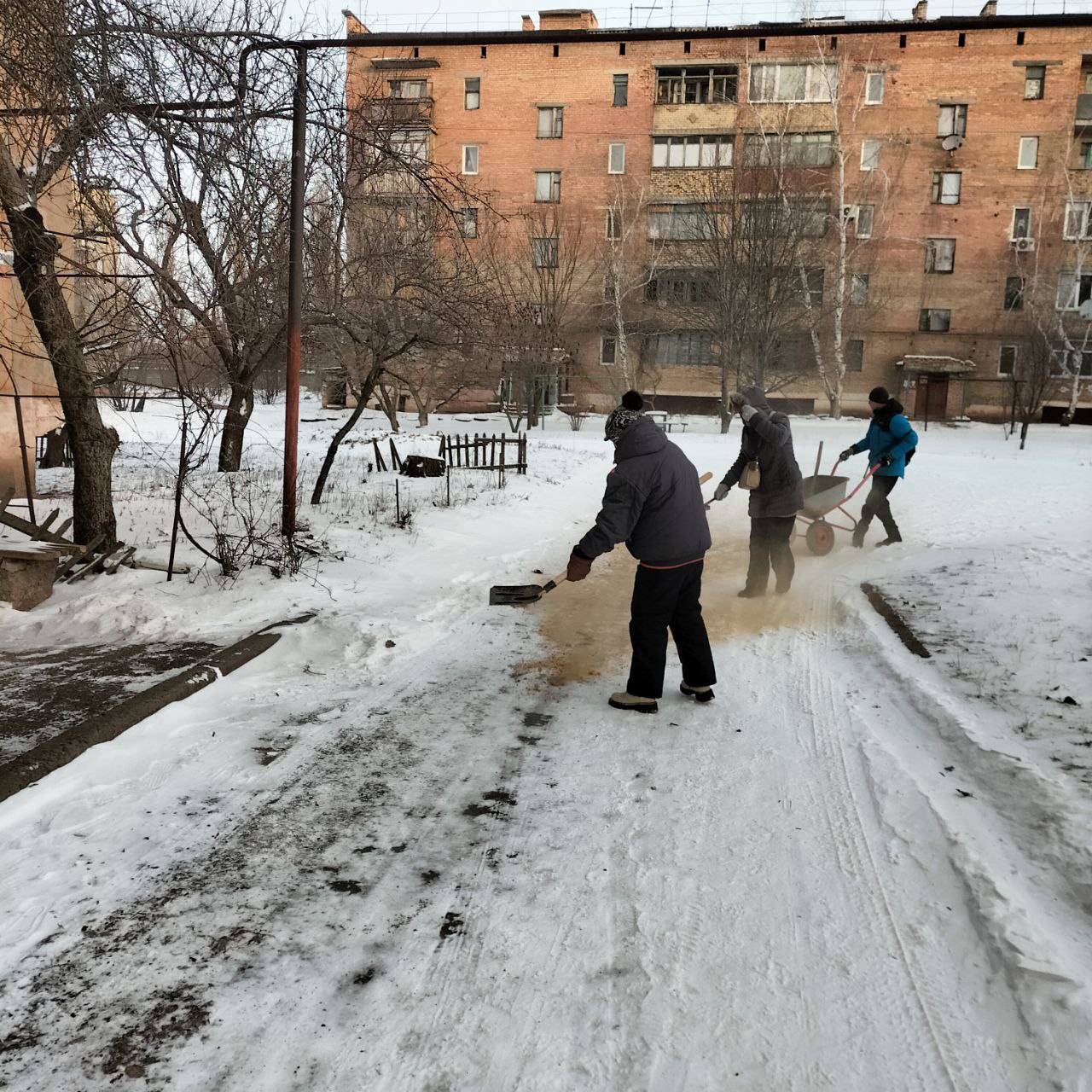 - расчистка снега и посыпка противогололёдными смесями тротуаров, внутриквартальных проездов, террриторий возле остановок общественного транспорта, подходов к жилым домам и ступеней;