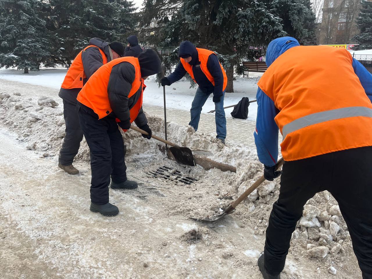 - очистка от снега и обработка дорожного полотна, пешеходных зон, площадей и скверов противогололёдными реагентами;