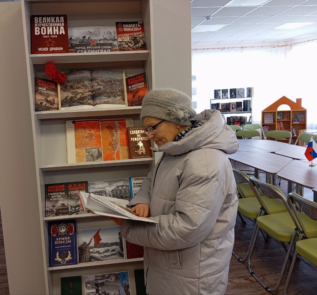 К памятной дате 2 февраля в читальном зале центральной городской библиотеки оформлена книжная экспозиция, посвященная победе в Сталинградской битве.