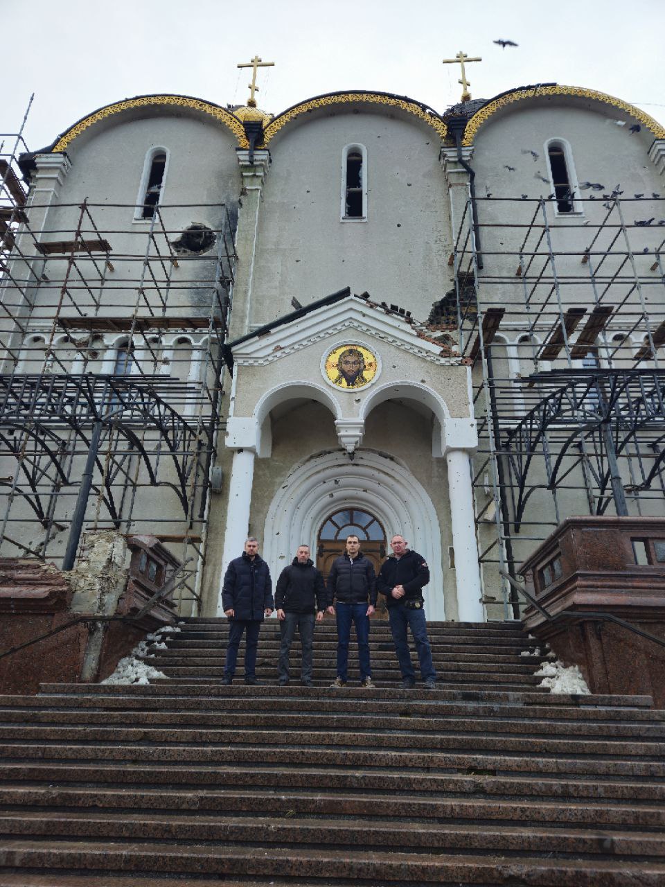 Евгений Белашев, Марина Каплянок, Юрий Леонов, Юрий Афендиков, Денис Островский и Дмитрий Дикий доставили гуманитарную помощь в Успенский Николо-Васильевский монастырь, расположенный в селе Никольское Волновахского муниципального округа при поддержке сенатора Российской Федерации Александра Волошина