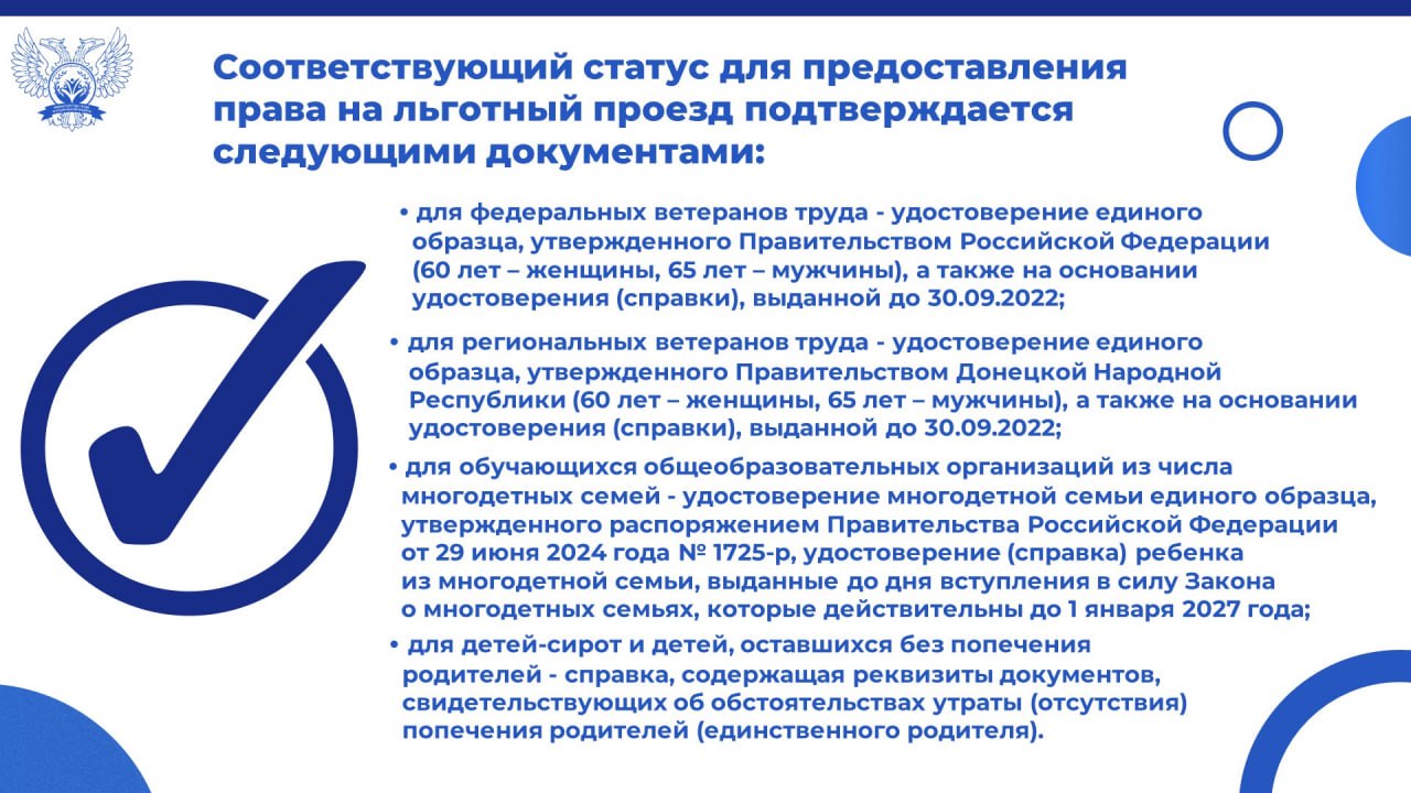 Ряд категорий граждан, которые ранее могли бесплатно пользоваться автомобильным и городским наземным электрическим транспортом, теперь утратили это право. Об этом сообщает Минтруда ДНР.
