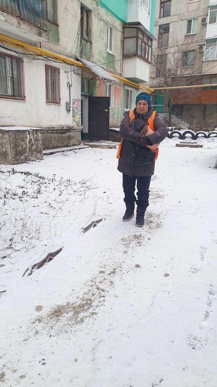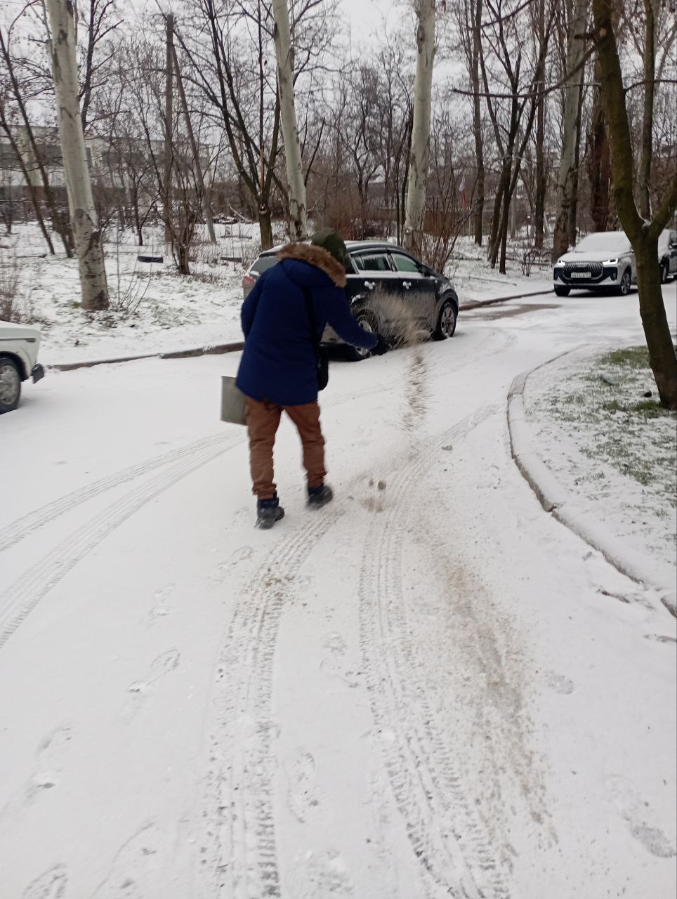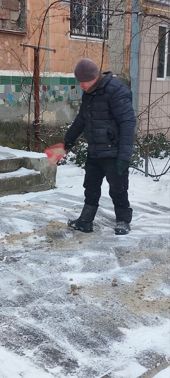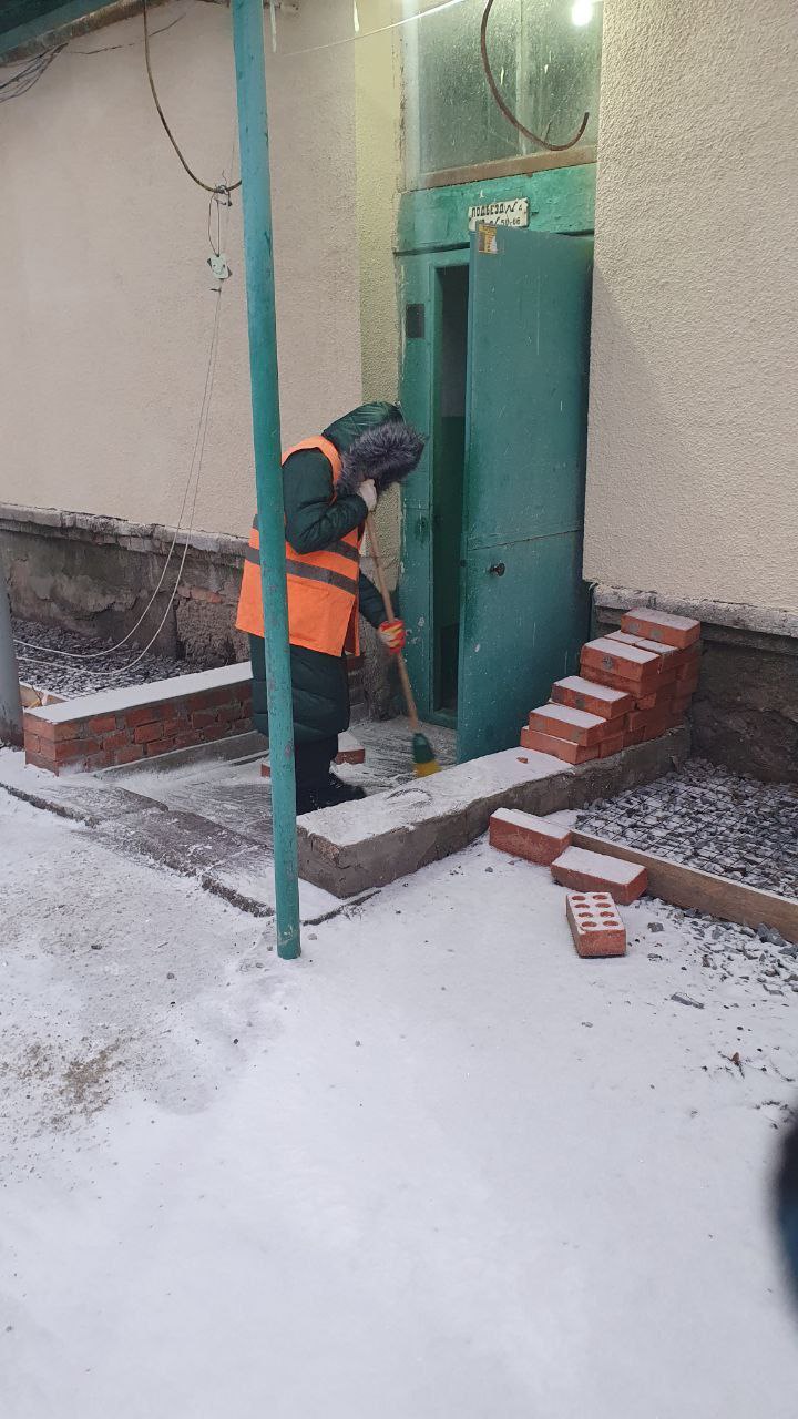 На территории городского округа Торез ведутся работы по расчистке от снега и посыпке придомовых территорий.