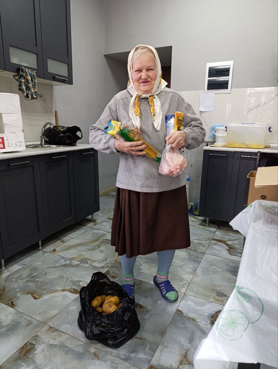 Эти усилия направлены на поддержку людей, временно размещённых в Волновахе, и создание комфортных условий для их проживания. Продуктовые наборы помогут обеспечить жителей необходимыми питательными веществами и сделают их пребывание в пунктах временного размещения более комфортным. Благодарны Союзу женщин ДНР и общественной организации «Русский мир» за оказанную помощь.