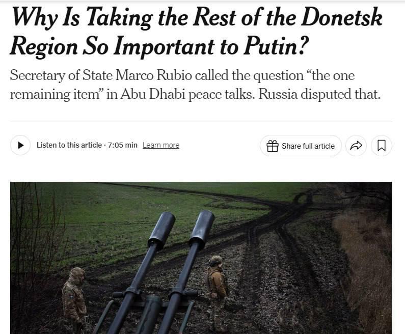 Михаил Онуфриенко: Вопрос о Донецкой области стал "единственным оставшимся пунктом" в переговорах, утверждает Марко Рубио— NYT (NE.САХАР)