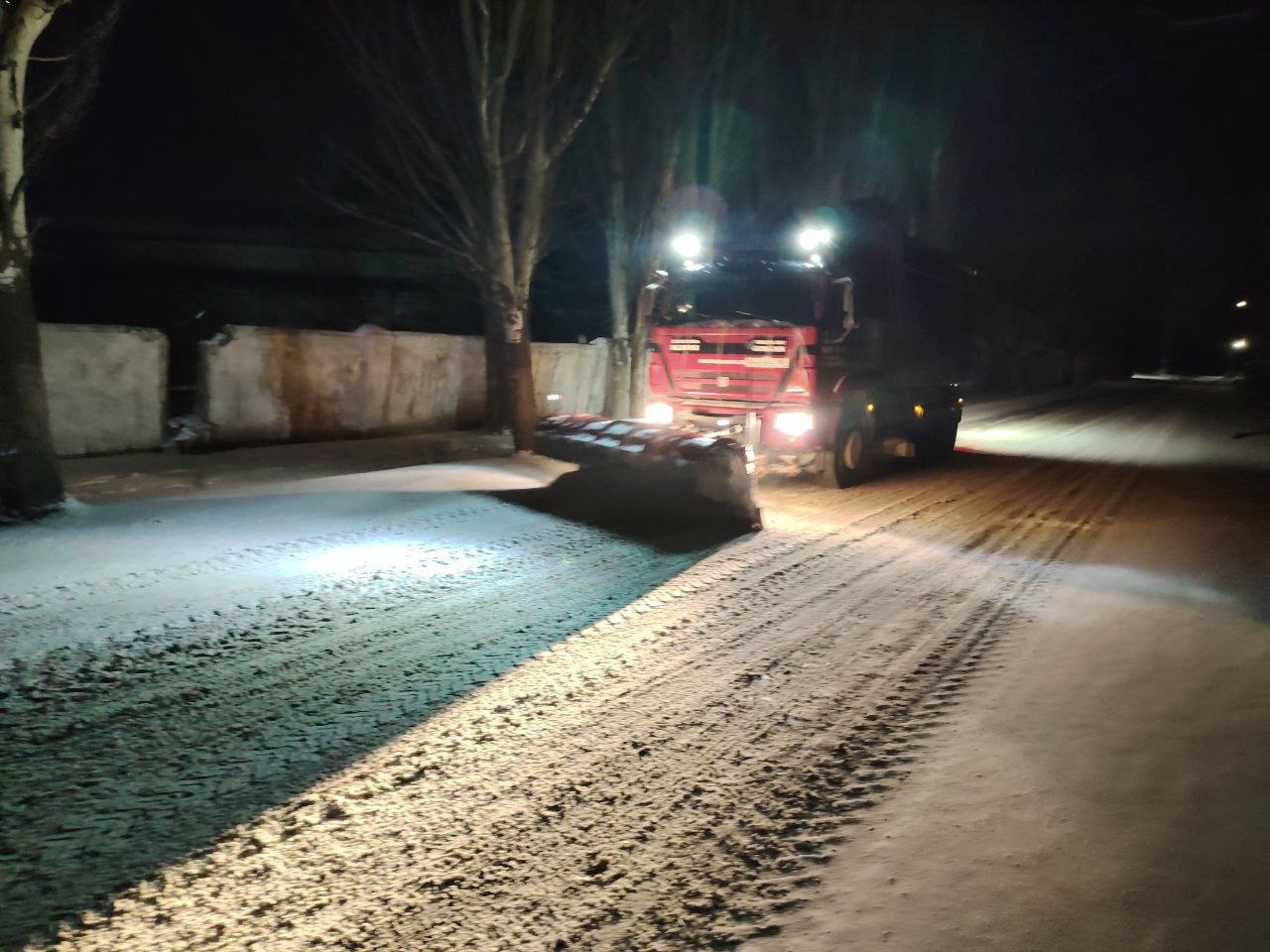 Специалисты ГУП ДНР «Донснабкомплект» выполняют расчистку и посыпку муниципальных дорог противогололедной смесью: