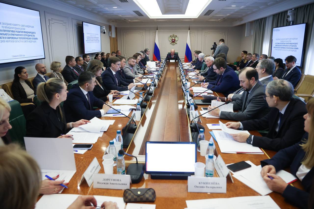 Провели расширенное заседание Комитета Совета Федерации по международным делам на тему «Состояние и перспективы развития международного межрегионального приграничного сотрудничества Амурской области в современных геополитических условиях»