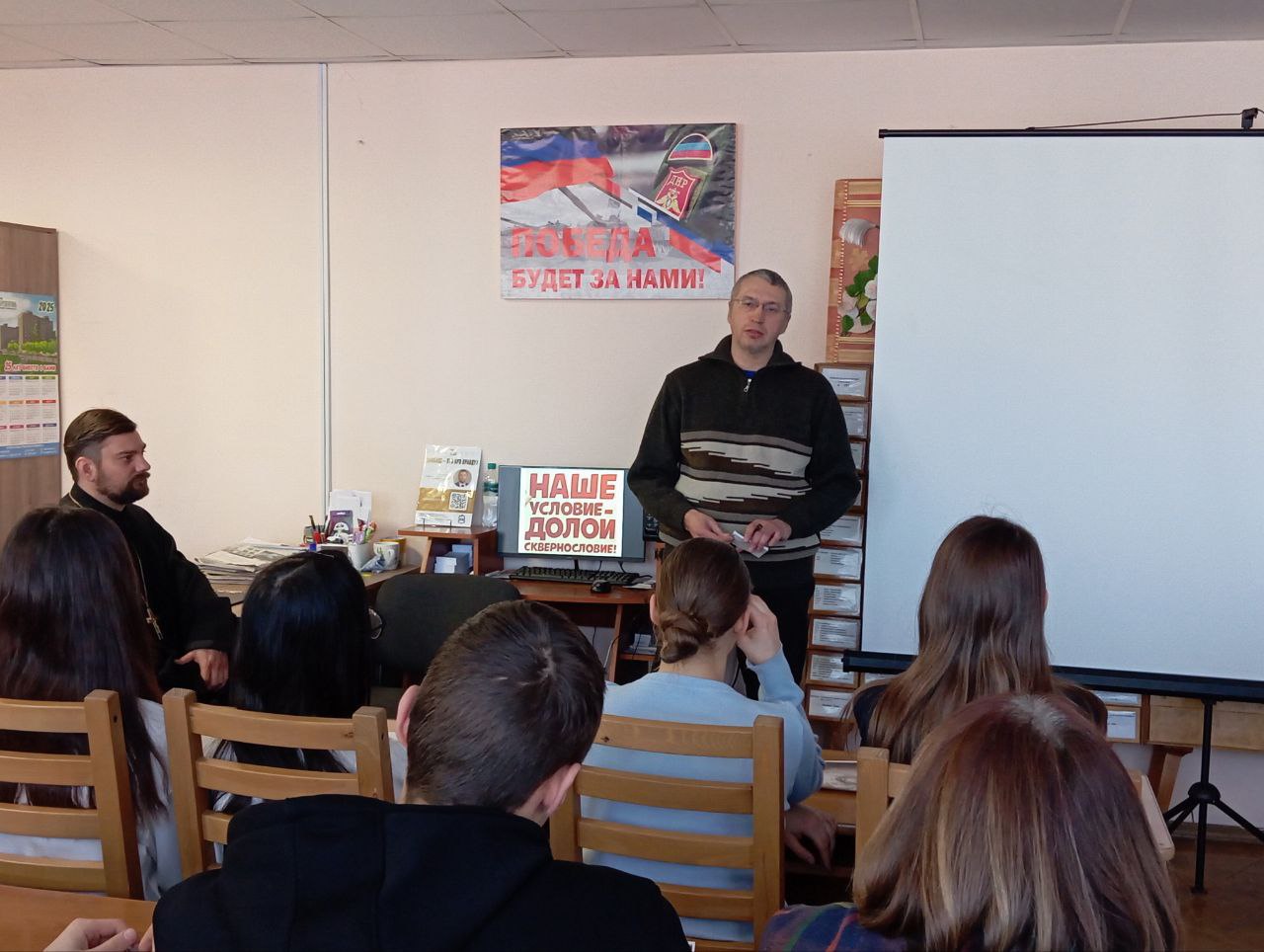 Использование непристойной речи ведет к целому ряду отрицательных последствий для говорящего, слушающего и общества в целом. Об этом свое мнение выразили гости мероприятия — священник Алексей Каменев, настоятель Свято-Казанского храма; Александр Викторович Цыба — член Союза писателей Донецкой Народной Республики, публицист, корреспондент городской газеты «Енакиевский рабочий».Они призывали не использовать бранную и нецензурную лексику в общественных местах и объяснили, как правильно обходиться без таких слов.