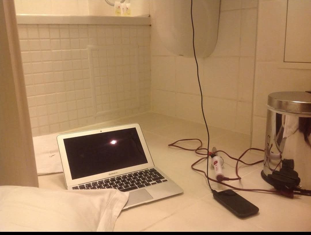 Я живу по ночам в гостиничном туалете в Донецке, там же работаю. 2014 год.