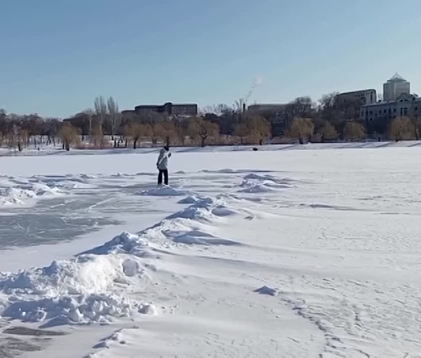Покатушки на коньках на замёрзшем Кальмиусе