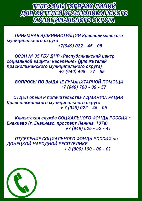 АКТУАЛЬНЫЕ ТЕЛЕФОНЫ ДЛЯ ЖИТЕЛЕЙ КРАСНОЛИМАНСКОГО МУНИЦИПАЛЬНОГО ОКРУГА
