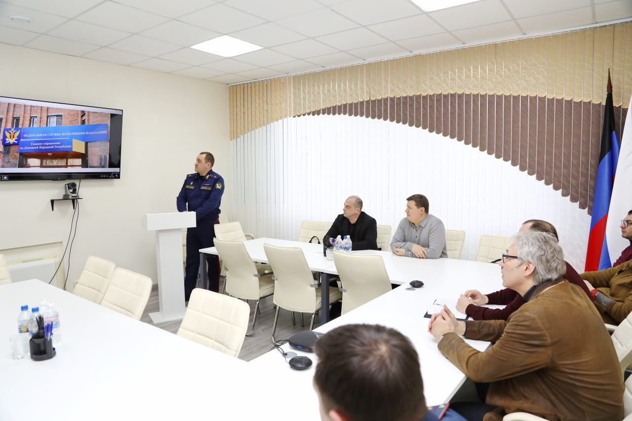 На мероприятии, в рамках которого обсудили реализацию Федерального закона «О пробации в Российской Федерации», расширение сети исправительных центров, а также создание центров пробации, присутствовали начальник управления Минюста России по Донецкой Народной Республике Сергей Шерстобитов, Советник Председателя Правительства ДНР Вадим Попченко, начальник управления организационной работы и документального обеспечения ДГУЮ Минюста России Андрей Веретеха, представитель благотворительного фонда «Братское сердце» Веселина Черданцева, а также инвестор Николай Ташкалюк.