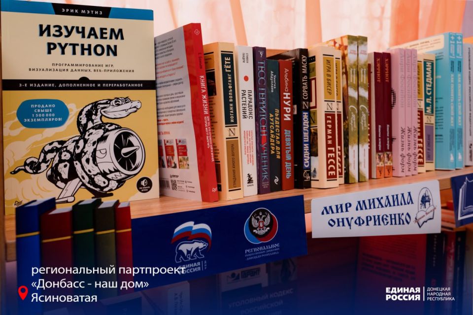 Донецкого реготделение Единой России и общественная организация Здоровое Отечество продолжают открывать народные библиотеки в городах Республики. Очередной храм знаний при поддержке журналиста, блогера, аналитика и военного эксперта Михаила Онуфриенко появился в одном из ПВР Ясиноватой.