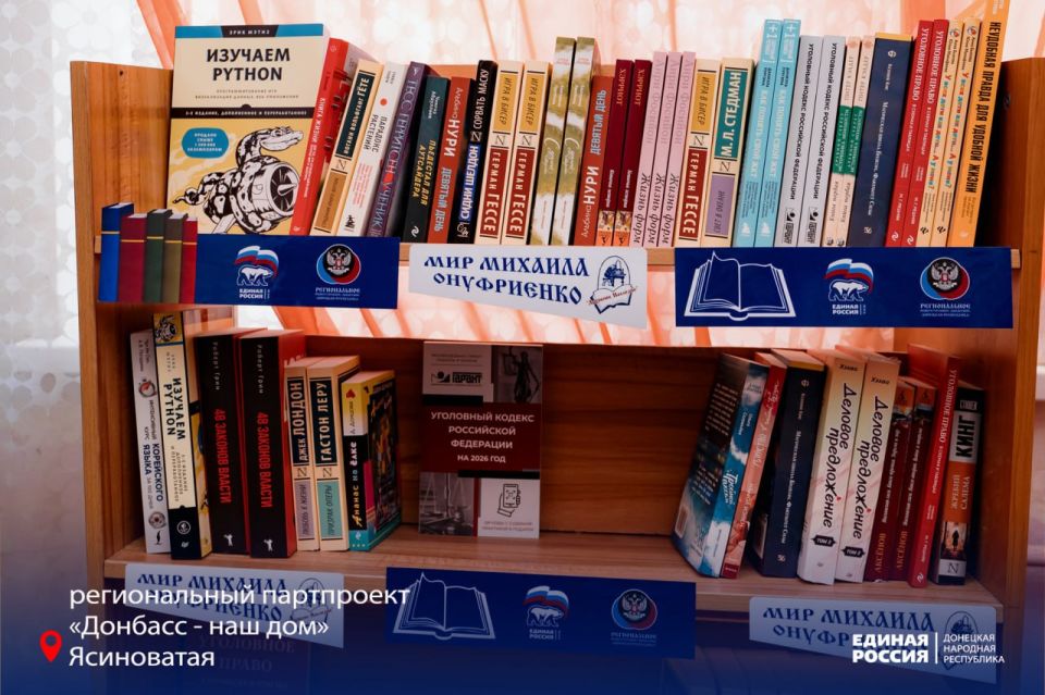 Донецкого реготделение Единой России и общественная организация «Здоровое Отечество» продолжают открывать народные библиотеки в городах Республики. Очередной храм знаний при поддержке журналиста, блогера, аналитика и военного эксперта Михаила Онуфриенко появился в одном из ПВР Ясиноватой.