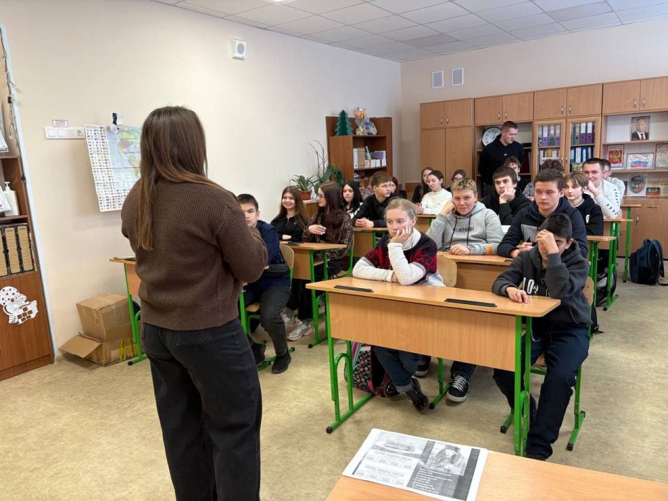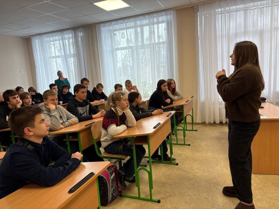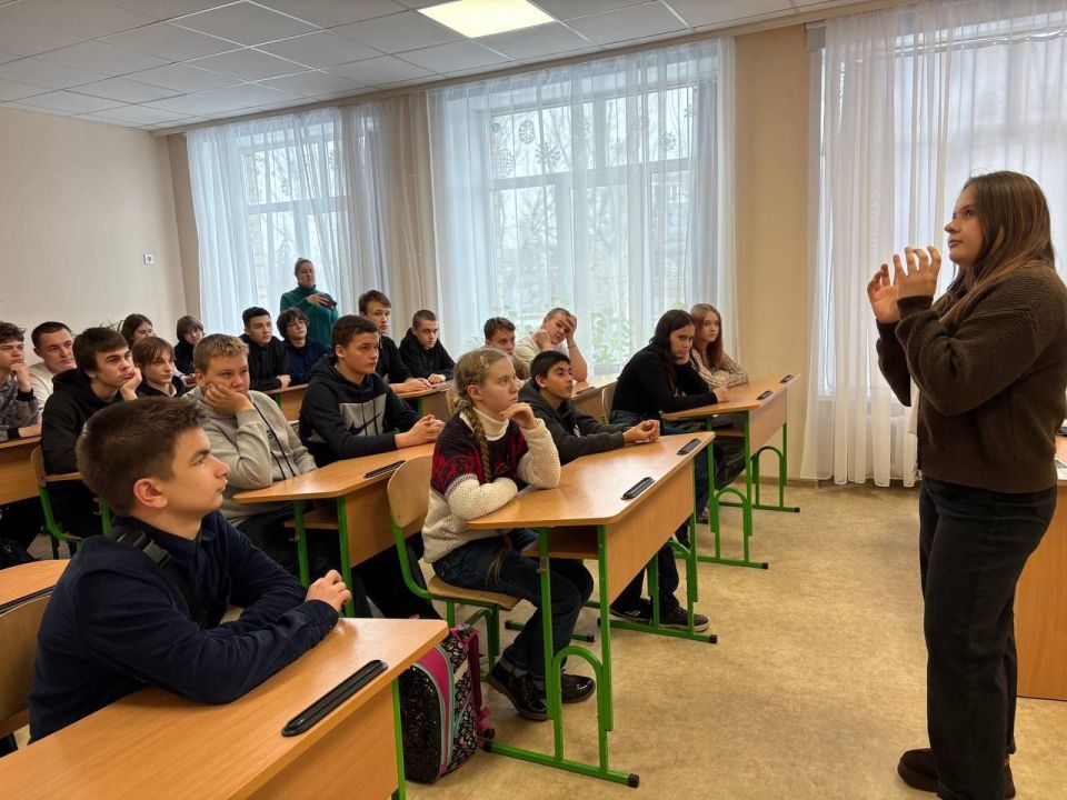 Ермоленко Елизавета, студентка Донецкого национального университета экономики и торговли имени Михаила Туган-Барановского, Костышина Мария, студентка Луганского государственного педагогического университета, и Телешов Влад, студент Донецкого государственного университета, провели для обучающихся 9-11 классов профориентационную беседу.