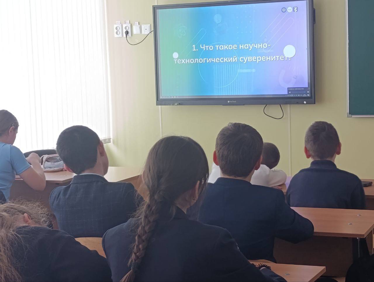 В ходе занятия обучающиеся изучили ключевые технологические направления страны, включая искусственный интеллект, робототехнику, биотехнологии и квантовые вычисления, узнали о всероссийском обществе изобретателей и рационализаторов (ВОИР). Ребята посмотрели захватывающие видео о буднях российских НИИ и современных технопарков.